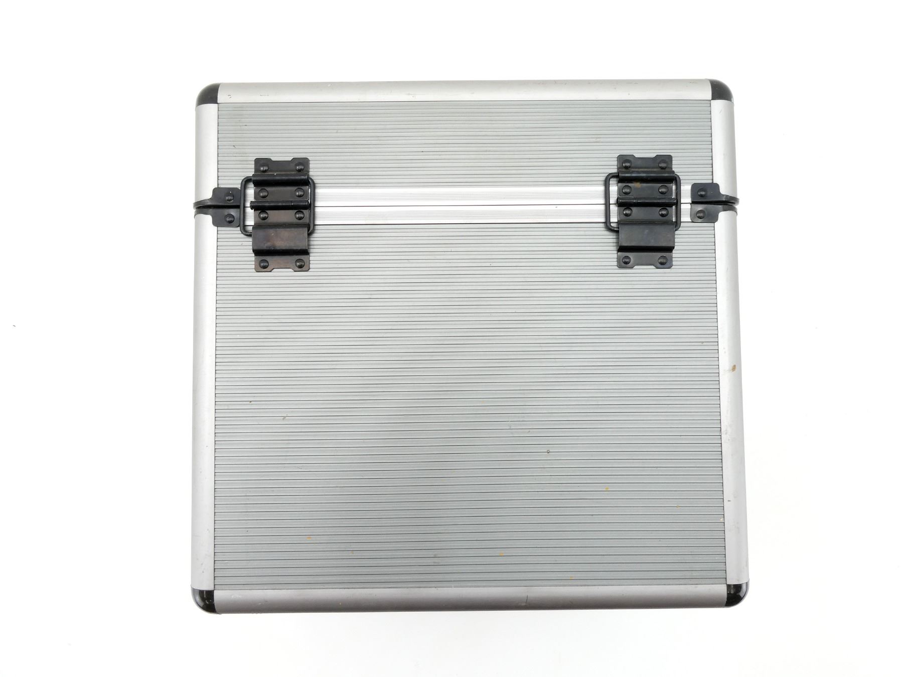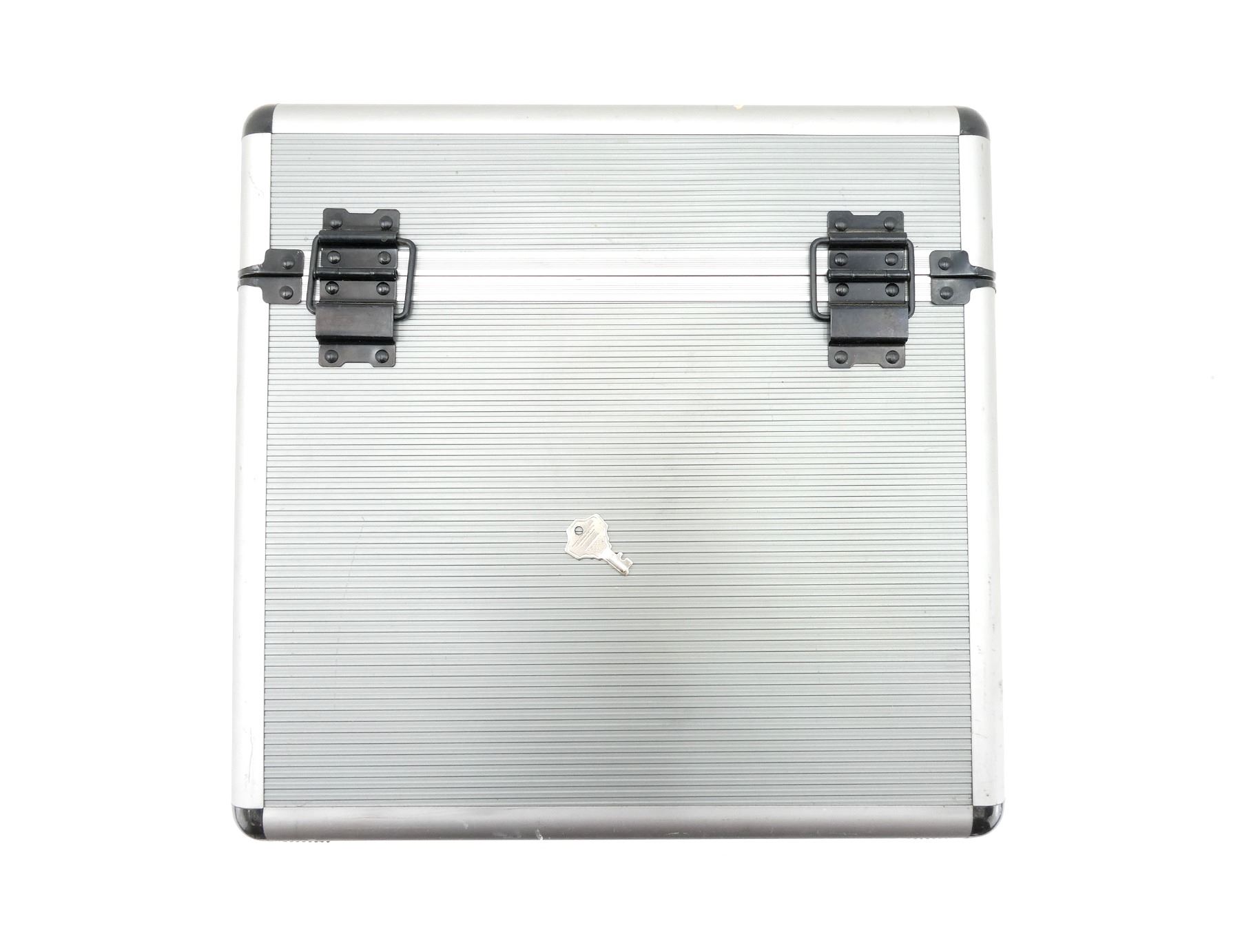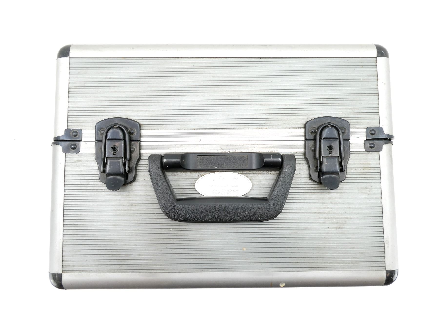 LOT INCLUDES; (1) RANGE BOX, CARRY HANDLE, (4) LATCHES, (2) ARE LOCKING WITH NO KEYS, FOAM PADDED, (2) INSIDE STORAGE COMPARTMENTS, APPROX. OVERALL LENGTH 14 1/2"X10"X14", SHOWS WEAR AND TEAR FROM USAGE, SEE PHOTOS.