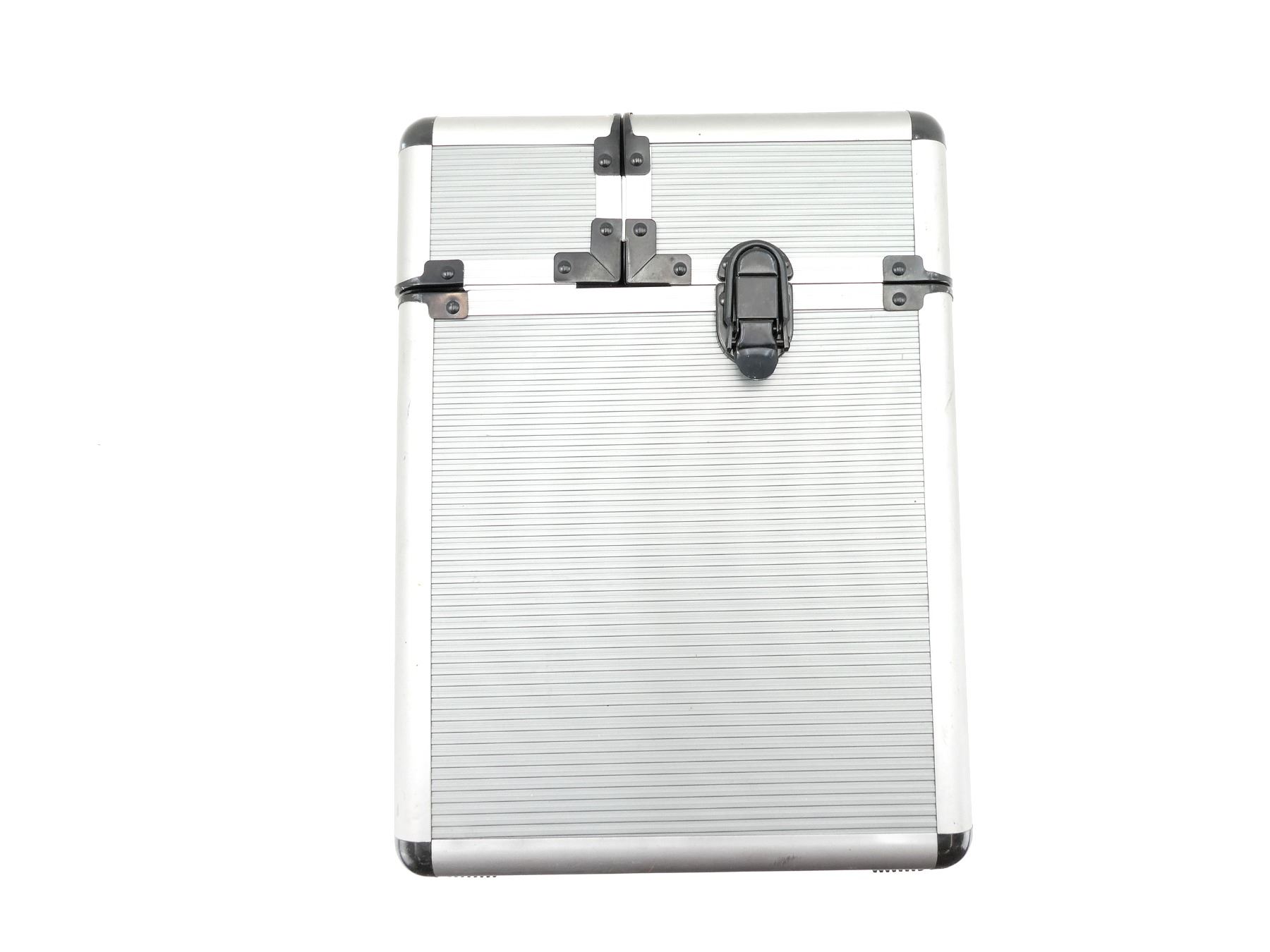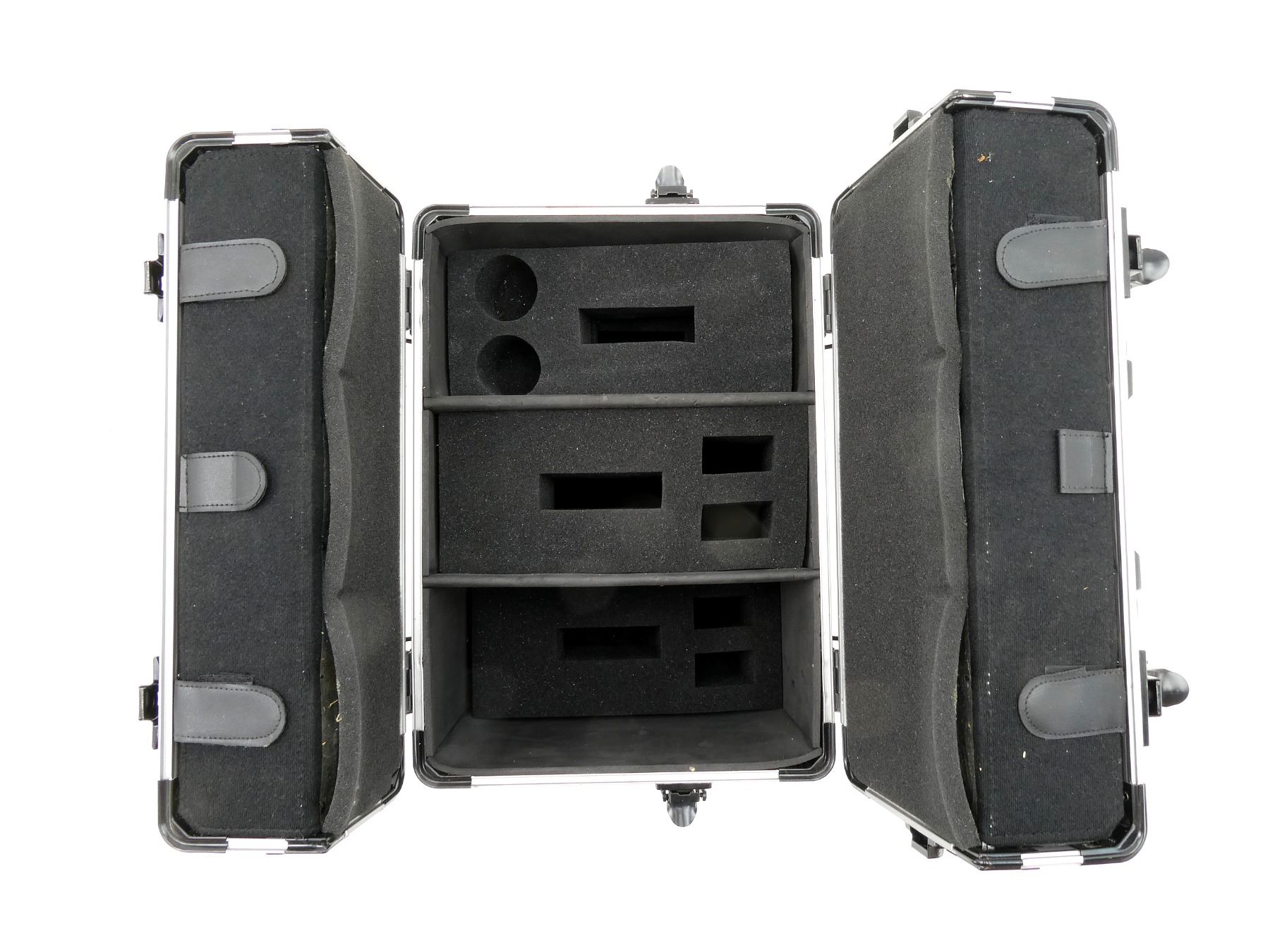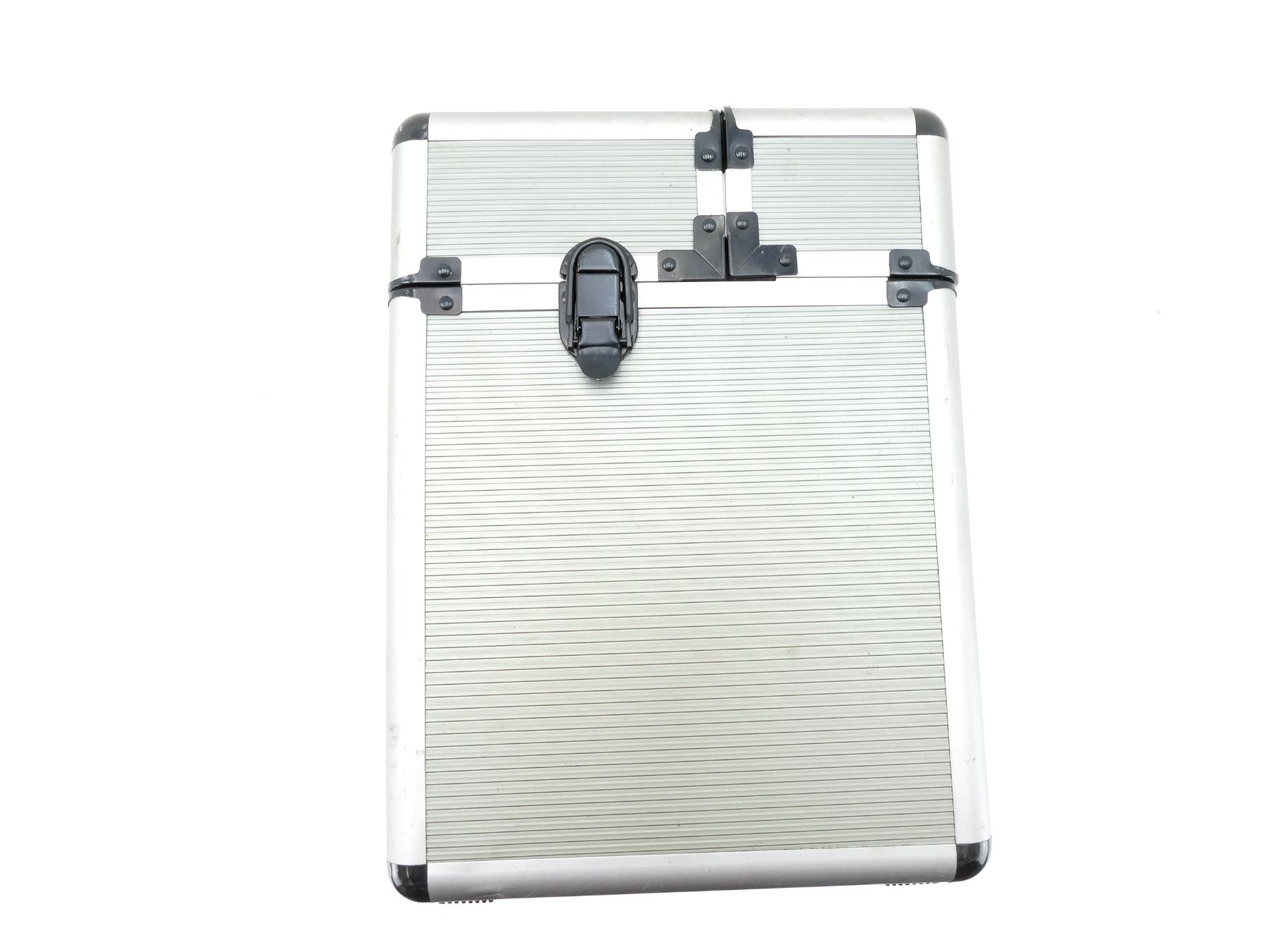 LOT INCLUDES; (1) RANGE BOX, CARRY HANDLE, (4) LATCHES, (2) ARE LOCKING WITH NO KEYS, FOAM PADDED, (2) INSIDE STORAGE COMPARTMENTS, APPROX. OVERALL LENGTH 14 1/2"X10"X14", SHOWS WEAR AND TEAR FROM USAGE, SEE PHOTOS.