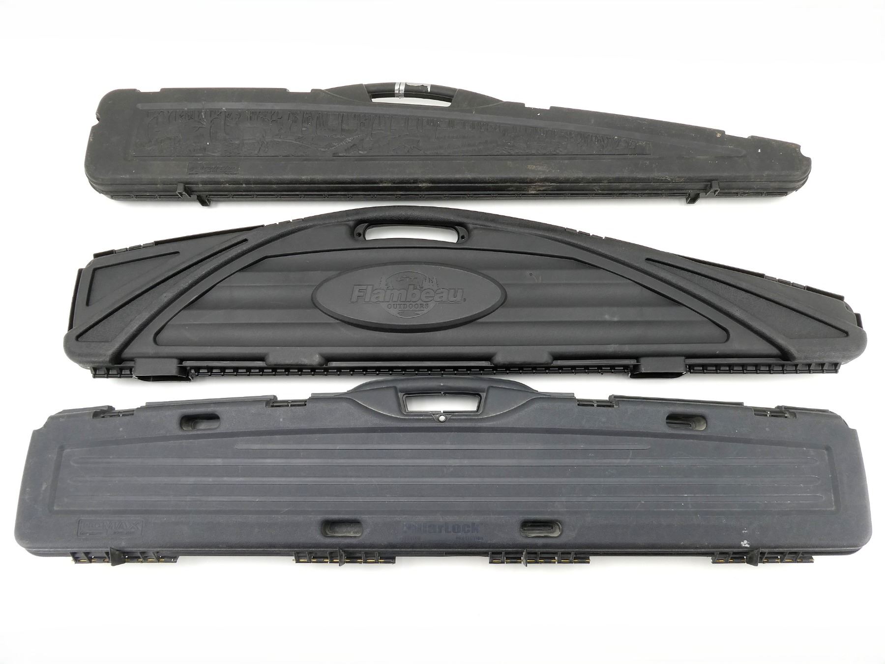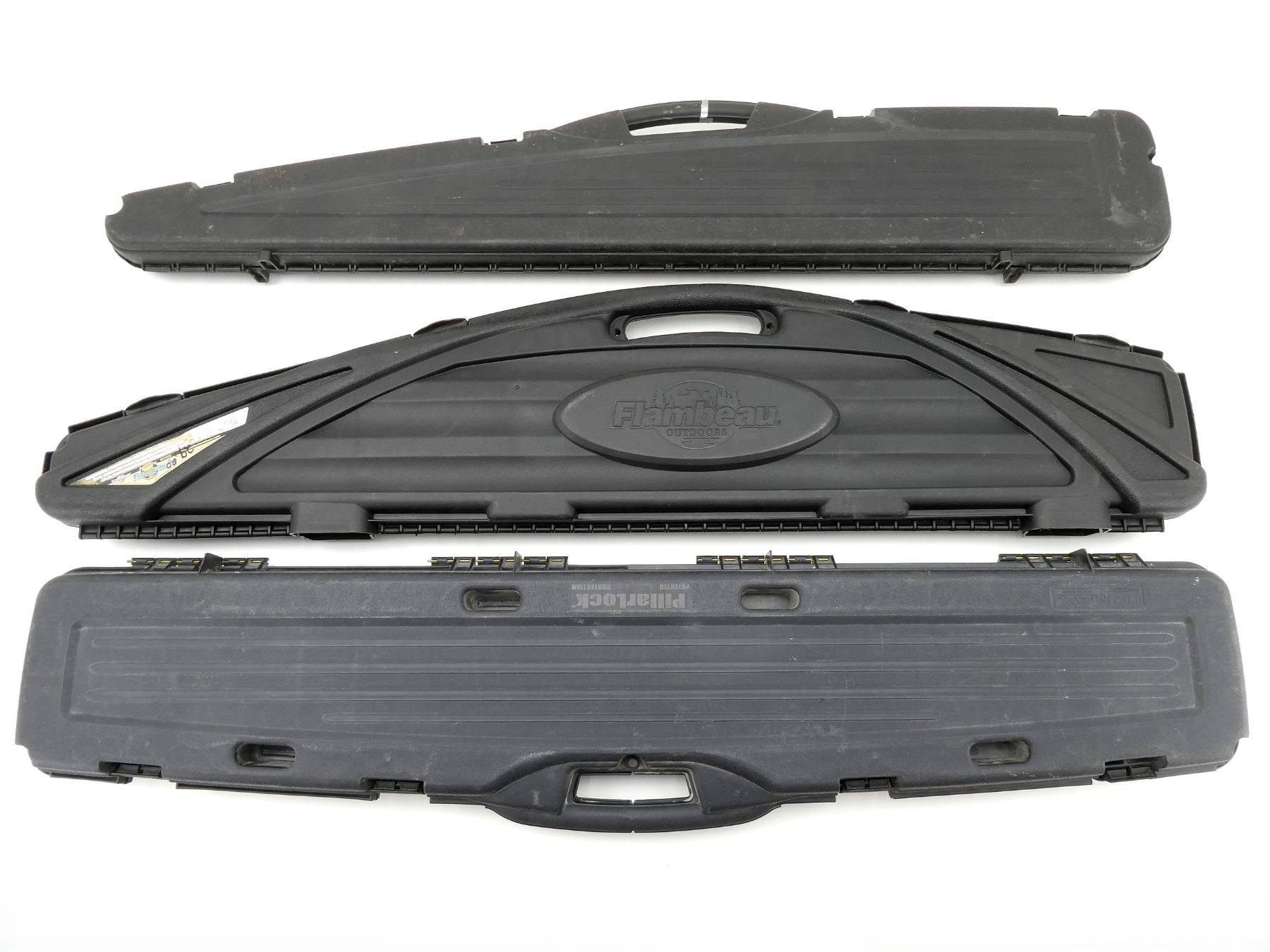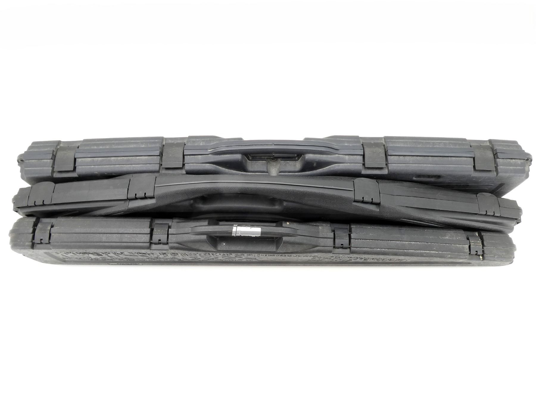 LOT INCLUDES; (3) BLACK HARD PADDED GUN CASES, CARRY HANDLE, (4) LATCHES, APPROX. OVERALL LENGTH 51"-52", SHOWS WEAR AND TEAR FROM USAGE, SEE PHOTOS