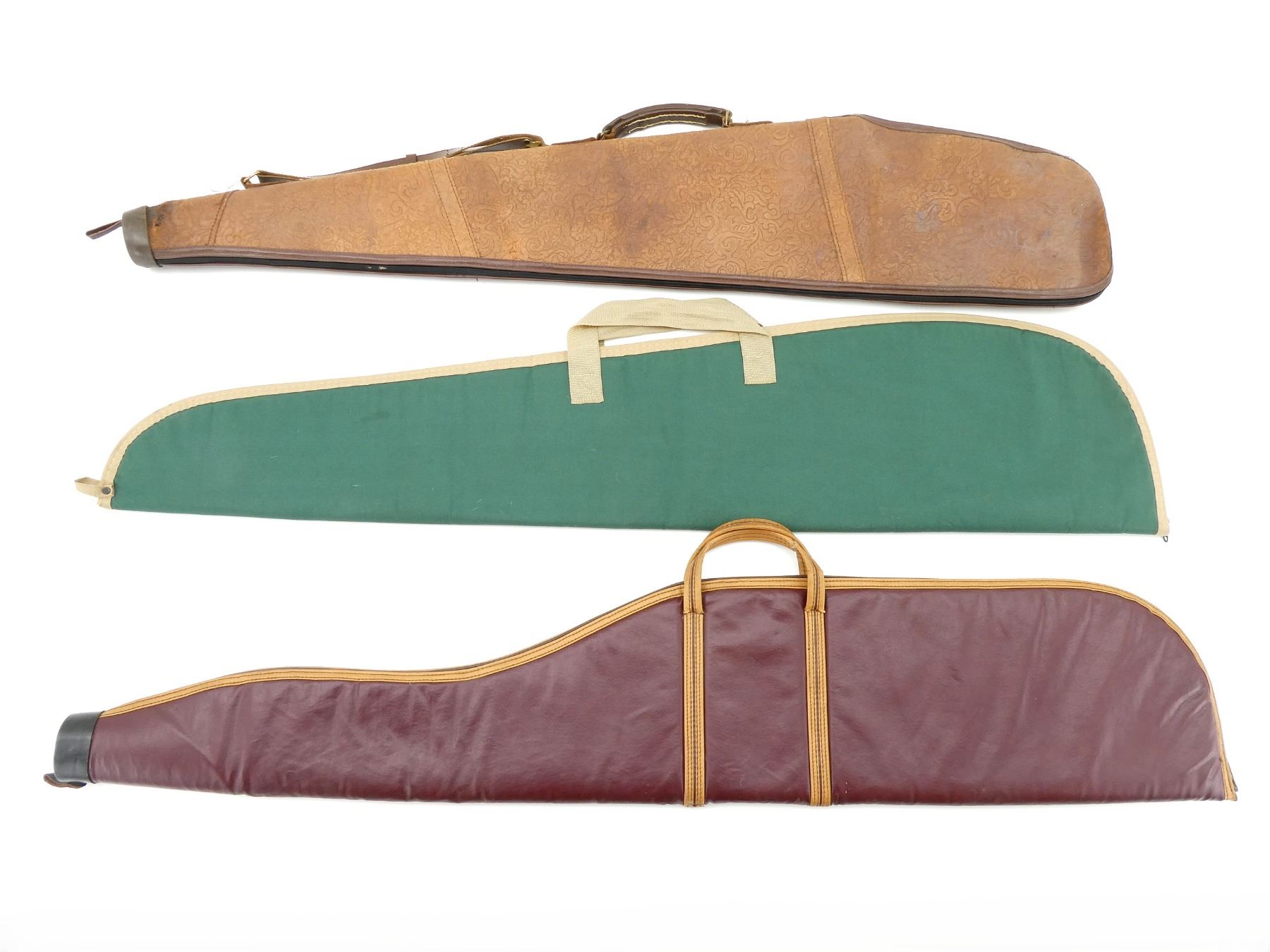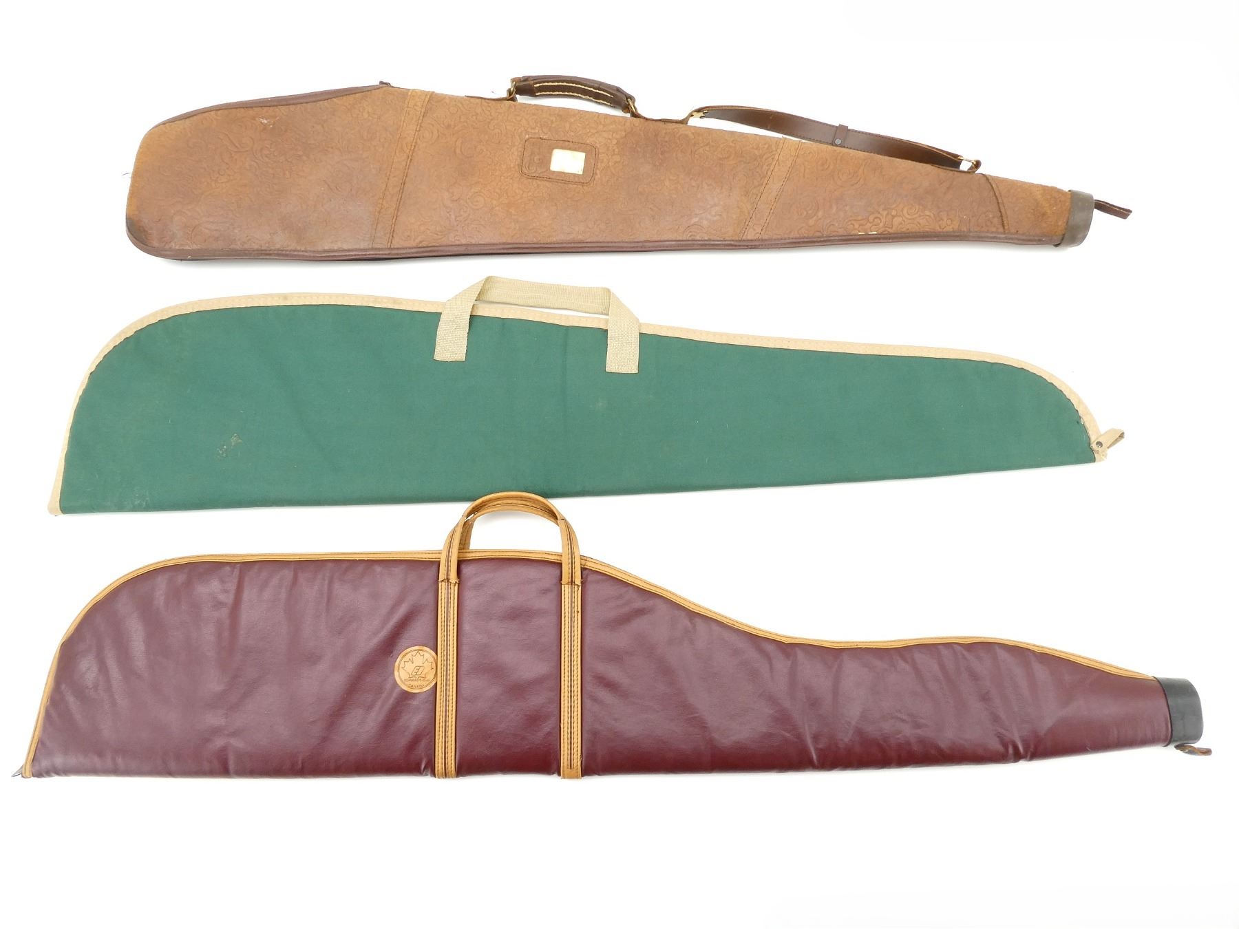 LOT INCLUDES; (3) SOFT PADDED GUN CASES, ZIPPERED, CARRY HANDLES, (1) WITH SHOULDER STRAP, APPROX. OVERALL LENGTH 45"-49", SHOWS WEAR AND TEAR FROM USAGE, SEE PHOTOS.