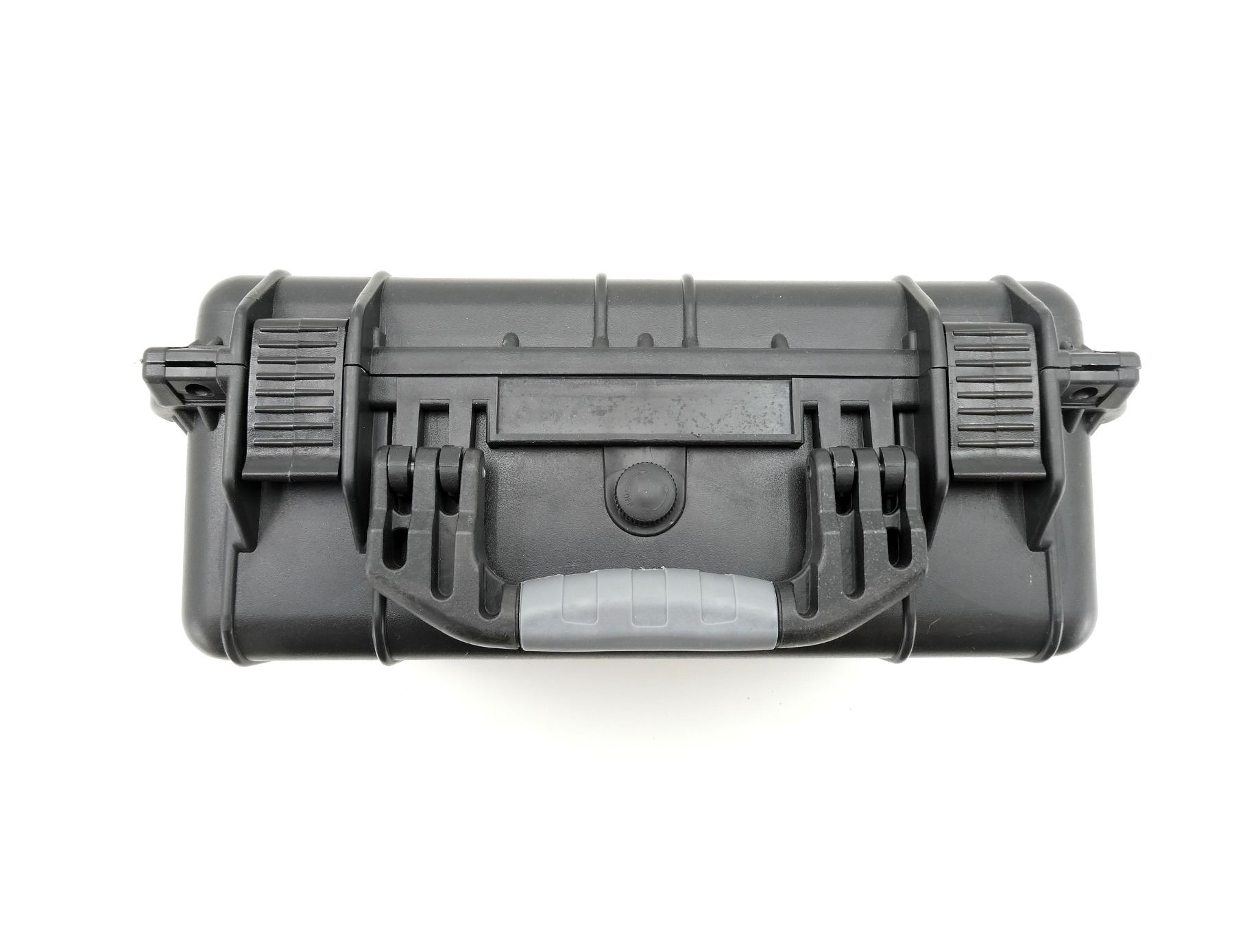 LOT INCLUDES; (1) BLACK HARD PADDED HANDGUN CASE, CARRY HANDLE, (2) LATCHES, PRESSURE RELEASE VALE, APPROX. OVERALL LENGTH 15", SHOWS WEAR AND TEAR FROM USAGE, SEE PHOTOS.