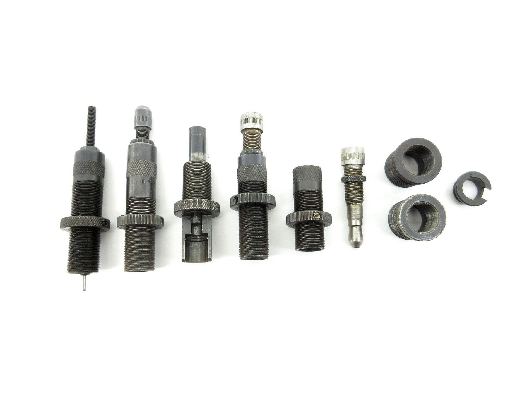 LOT INCLUDES; (5) .310 RELOADING DIES WITH (2) .310 DIE ADAPTERS 7/8 X 14, (1) #2 SHELL HOLDER & (1) BULLET SEATING SCREW MARKED: "308". SEE PHOTOS.