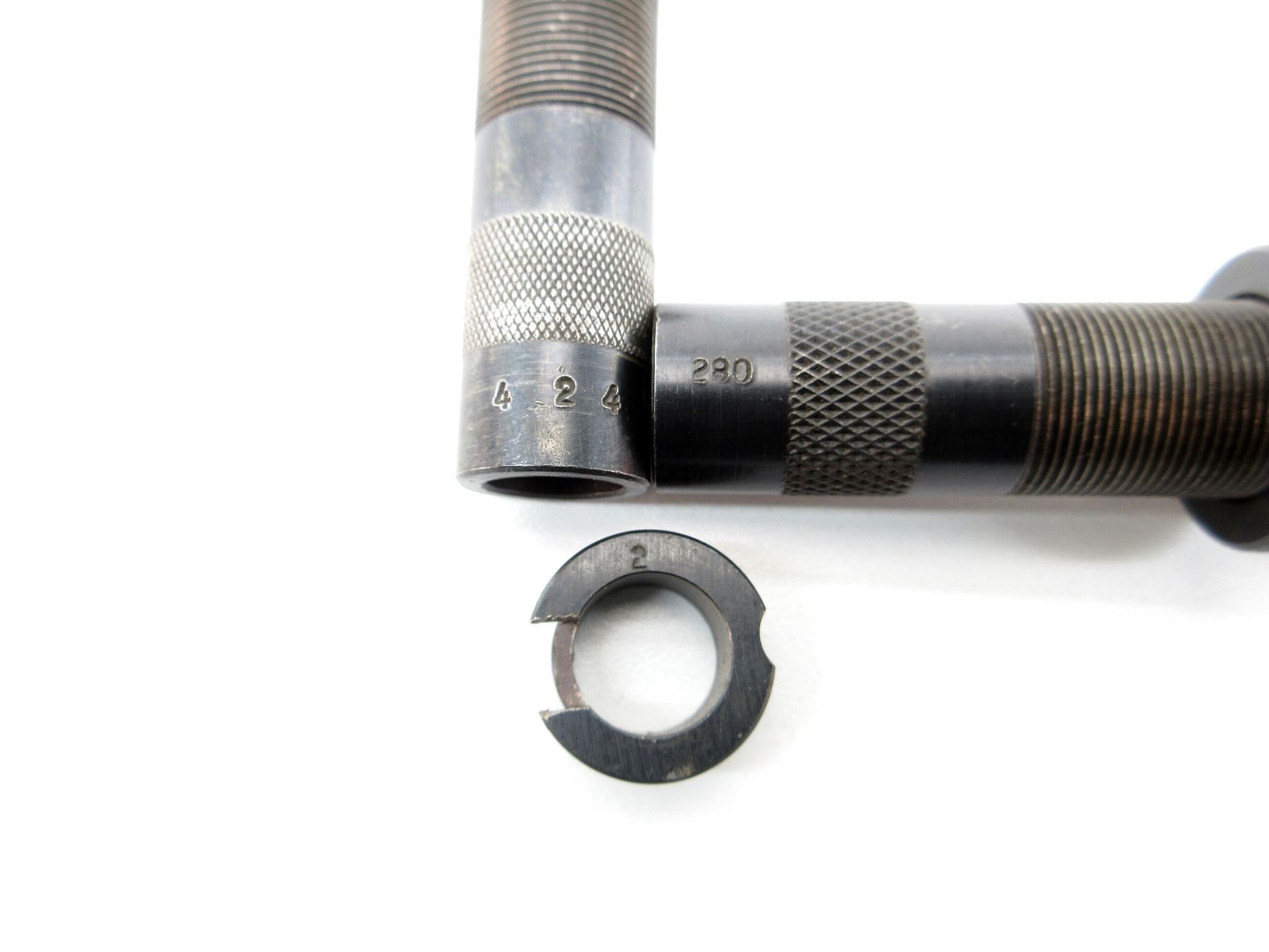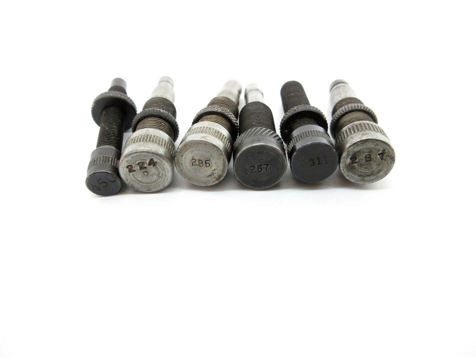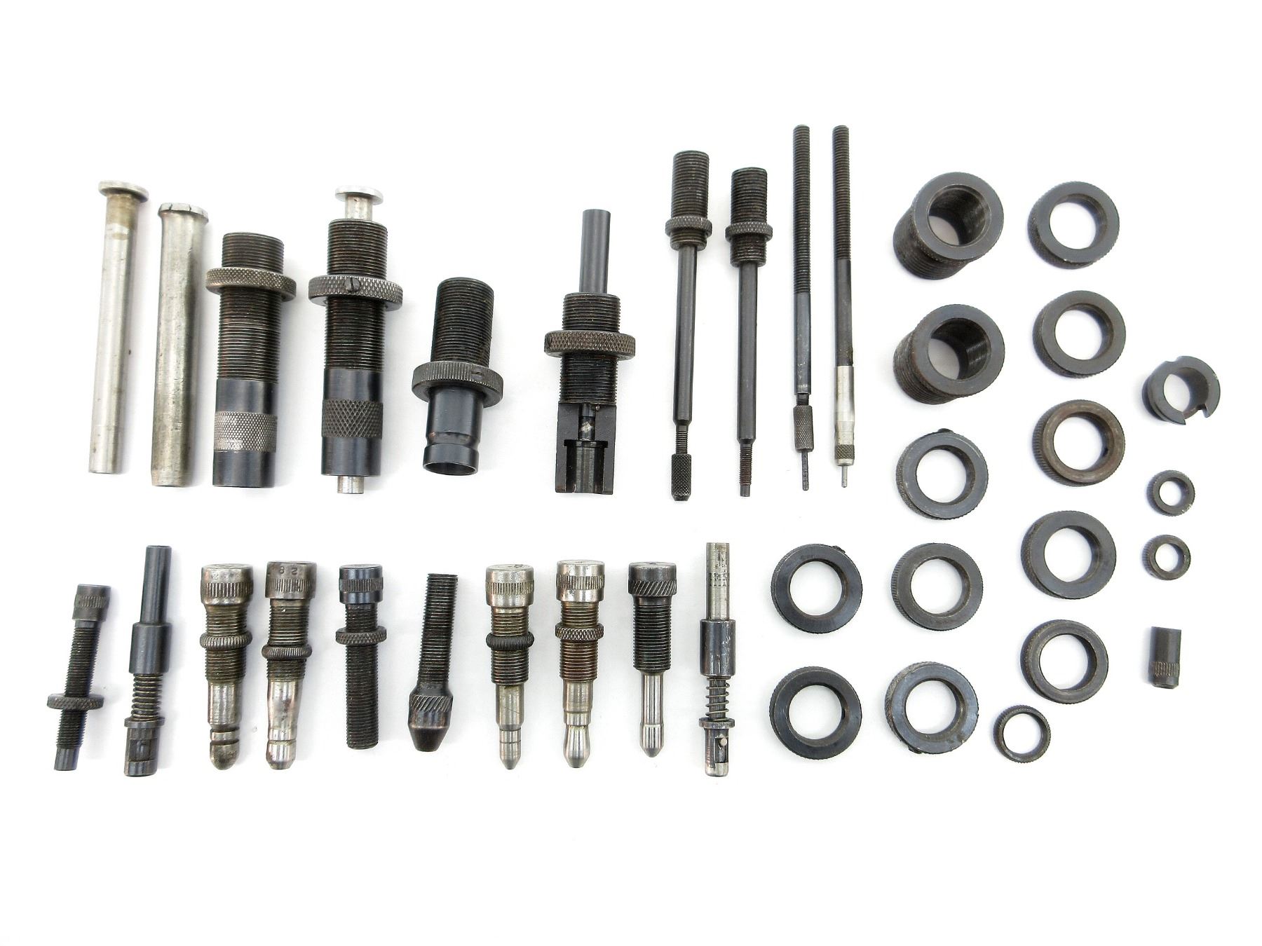 APPROX. (36) PIECES, INCLUDES; VARIOUS SIZED LOCKING RINGS, .310 DIE ADAPTERS 7/8 X 14, EXPANDING PLUGS, BULLET SEATING SCREWS, PRIMER RODS, RELOADING DIES, DECAPPING RODS, #2 SHELL HOLDER, SOME PIECES MARKED: "1", "285", "311", ".257", "450", "287", "246", "223", "465", "224", "280", "468" & "424". SEE PHOTOS.