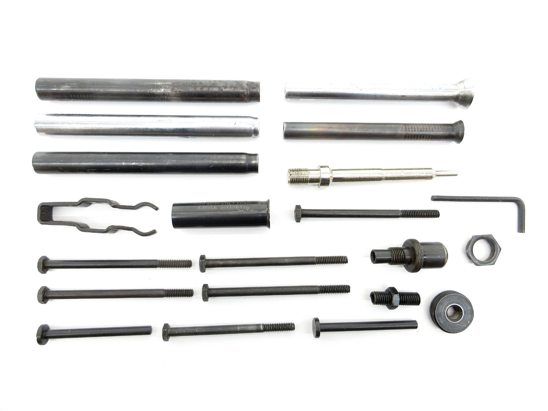 APPROX. (21) PIECES, ASSORTED GAUGES, INCLUDES; VARIOUS SIZED SCREWS, VARIOUS FUNNELS / TUBES, LOCKING RINGS, ALLEN KEY, METAL BRACKET, ETC. SEE PHOTOS.