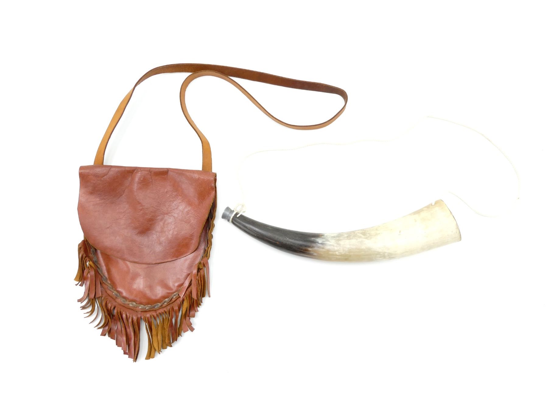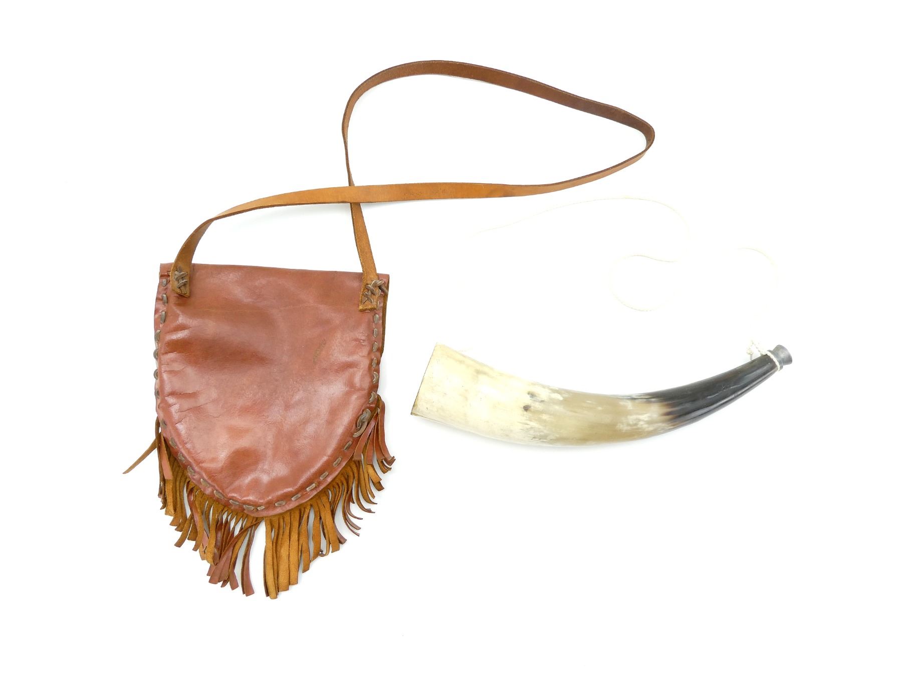 Lot 16073 BLACK POWDER HORN AND POSSIBLES BAG LOT