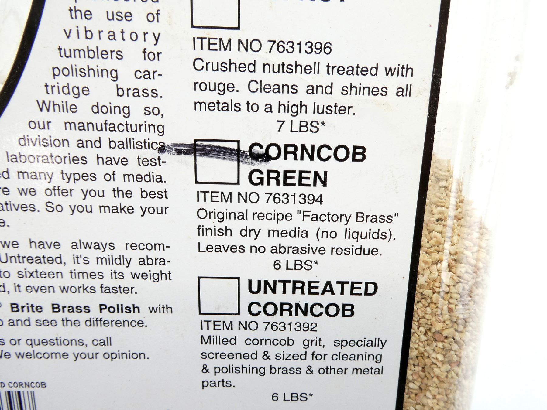 LOT INCLUDES; (1) CONTAINER OF UNTREATED CORNCOB MEDIA, APPROX. 2.9LBS (WITH CONTAINER). SEE PHOTOS.