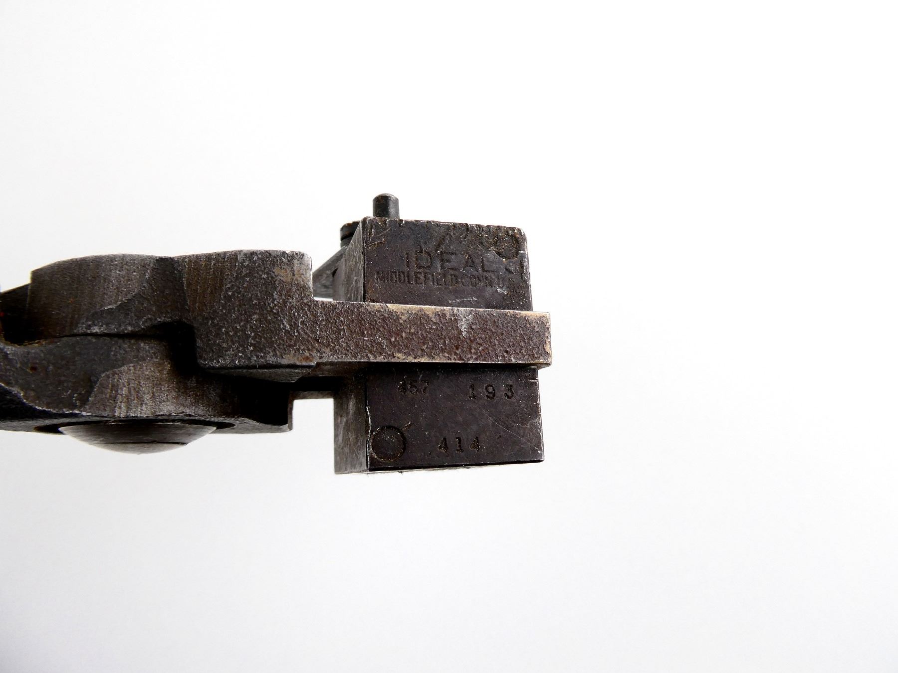 LOT INCLUDES; (1) APPROX. .457" DIA. SINGLE-CAVITY BULLET MOLD WITH WOOD HANDLES ATTACHED, MOLD MARKED: "IDEAL, 457, 193, 414". SEE PHOTOS.