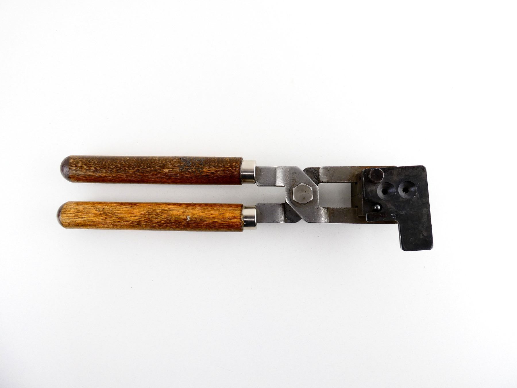 LOT INCLUDES; (1) .40 CAL. DOUBLE-CAVITY BULLET MOLD WITH RCBS WOOD HANDLES ATTACHED, APPROX. .410" DIA., MOLD MARKED: "40-300-CS, RCBS". SEE PHOTOS.
