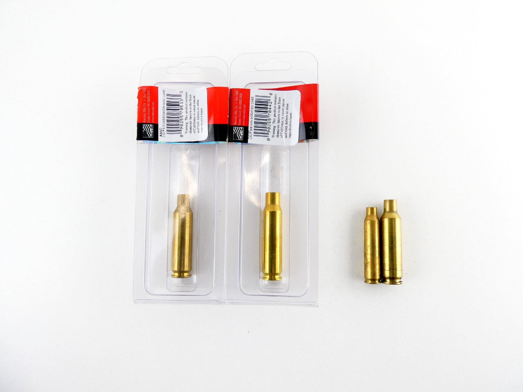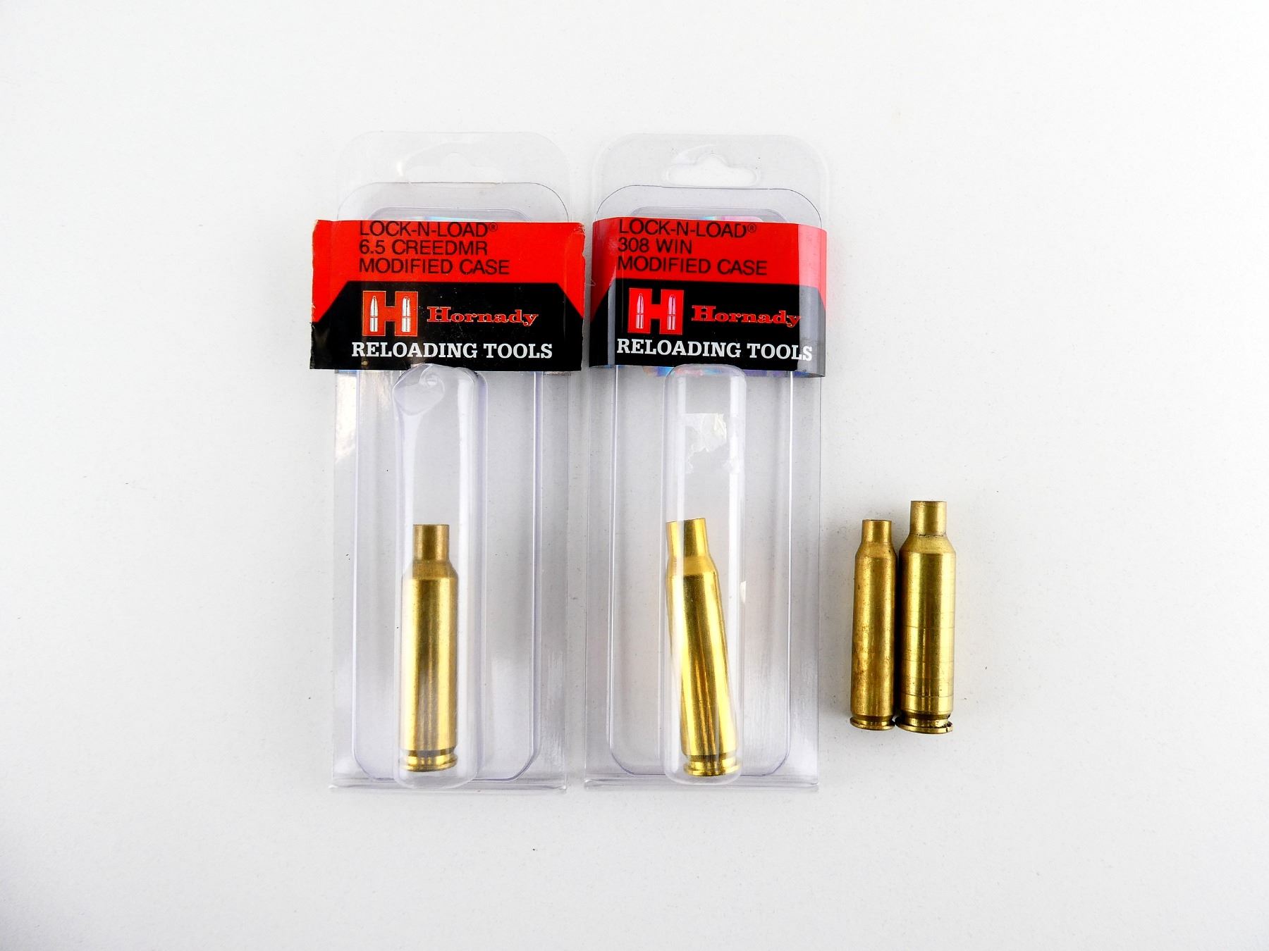 LOT INCLUDES; (2) LOCK-N-LOAD 6.5 CREEDMOOR MODIFIED CASES, ONE WITH ORIGINAL PACKAGING, (1) LOCK-N-LOAD .308 WIN MODIFIED CASE, APPEARS NEW OLD STOCK & (1) HORNADY .223 MODIFIED CASE. SEE PHOTOS.