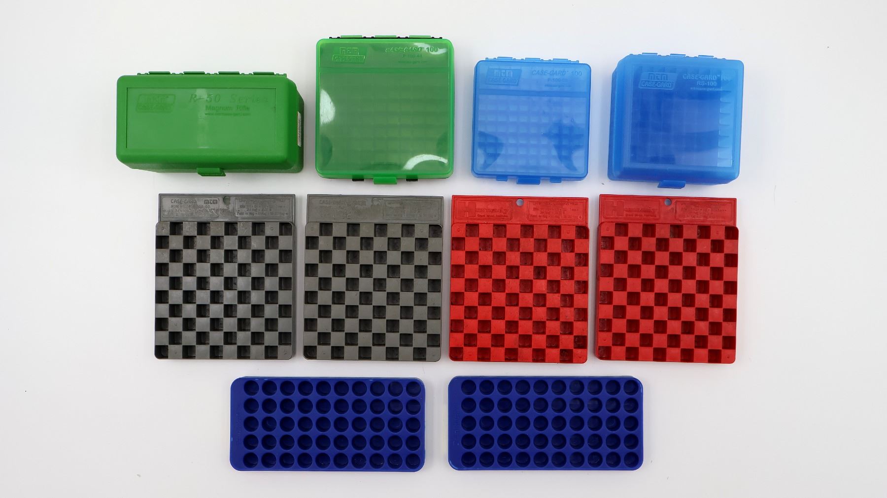 LOT INCLUDES; (2) MTM CASE GARD GREEN / BLUE PLASTIC RIFLE AMMO CONTAINERS, FITS VARIOUS CALIBERS, ONE HOLD 50-RNDS, ONE HOLDS 100-RNDS, (2) MTM CASE GARD GREEN / BLUE PLASTIC PISTOL AMMO CONTAINERS, FITS VARIOUS CALIBERS, BOTH HOLD 100-RNDS, (2) HORNADY RED PLASTIC UNIVERSAL LOADING TRAYS, FITS VARIOUS RIFLE / PISTOL CALIBERS, HOLDS 150-RNDS, (2) MTM CASE GARD UNIVERSAL LOADING TRAYS, FITS VARIOUS RIFLE / PISTOL CALIBERS, HOLDS 150-RNDS & (2) FRANKFORD ARSENAL BLUE PLASTIC RELOADING TRAYS, FITS VARIOUS RIFLE / ONE PISTOL CALIBERS, HOLDS 50-RNDS. SEE PHOTOS.