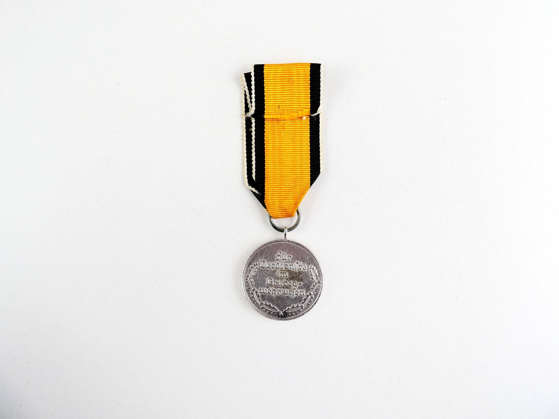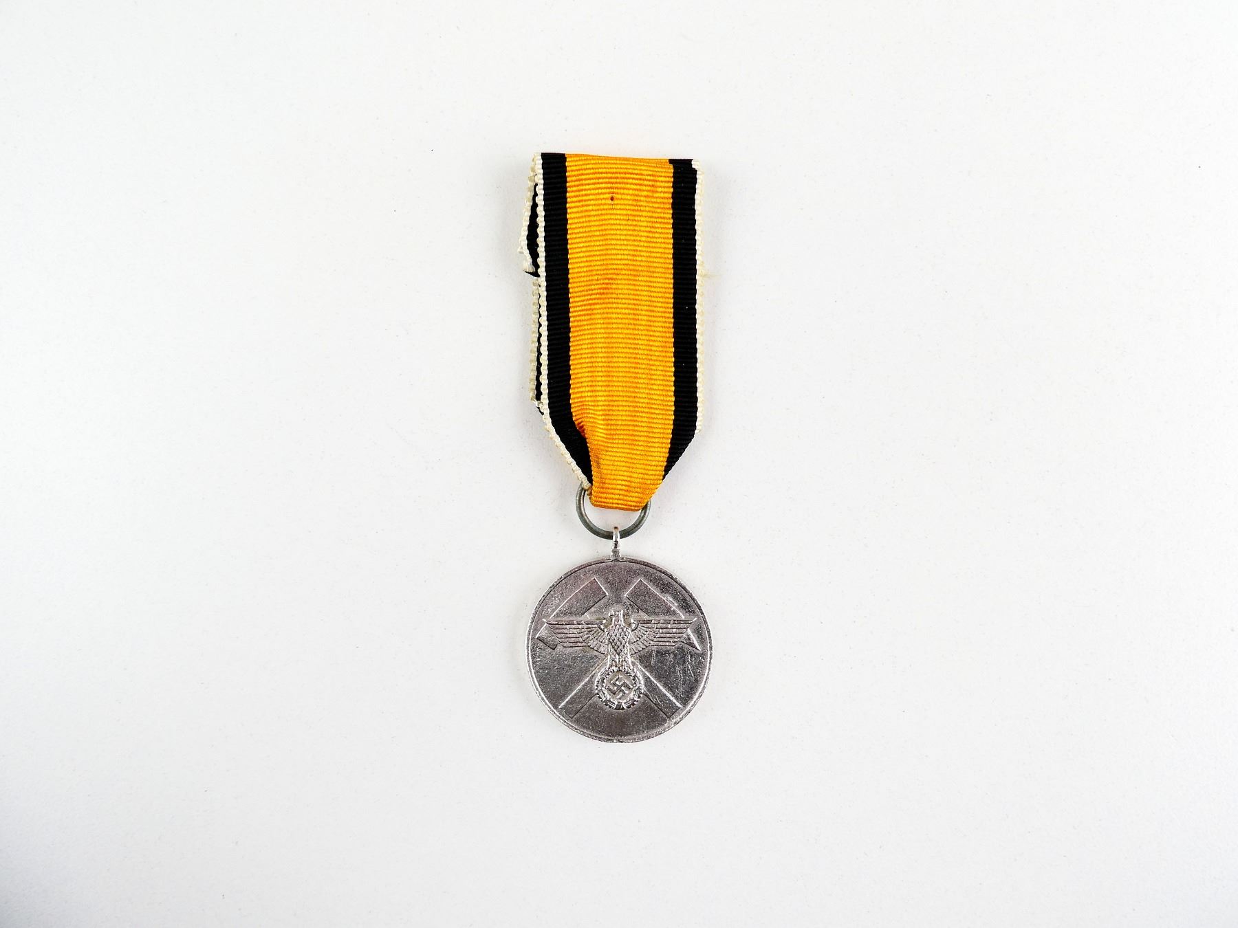 (1) REPRODUCTION MINE RESCUE SERVICE DECORATION MEDAL WITH RIBBON, MARKED: "FUR VERDIENSTE IM GRUBEN-WEHRWESEN", NO MARKING ON RIBBON LOOP, RIBBON APPEARS TO GLOW UNDER BLACK LIGHT. SEE PHOTOS.
