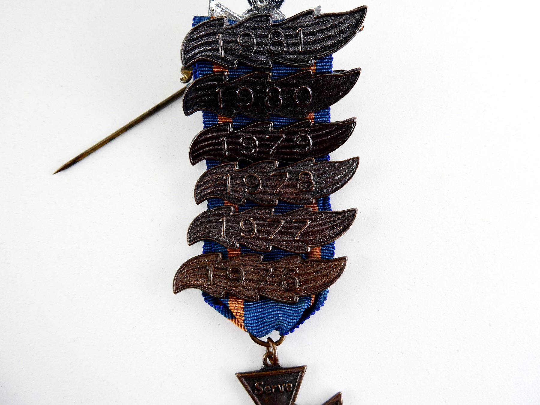 LOT INCLUDES; (1) JMA LONG SERVICE MEDAL WITH RIBBON & 1976 TO 1981 BARS INDICATING YEARS OF SERVICE. SEE PHOTOS.