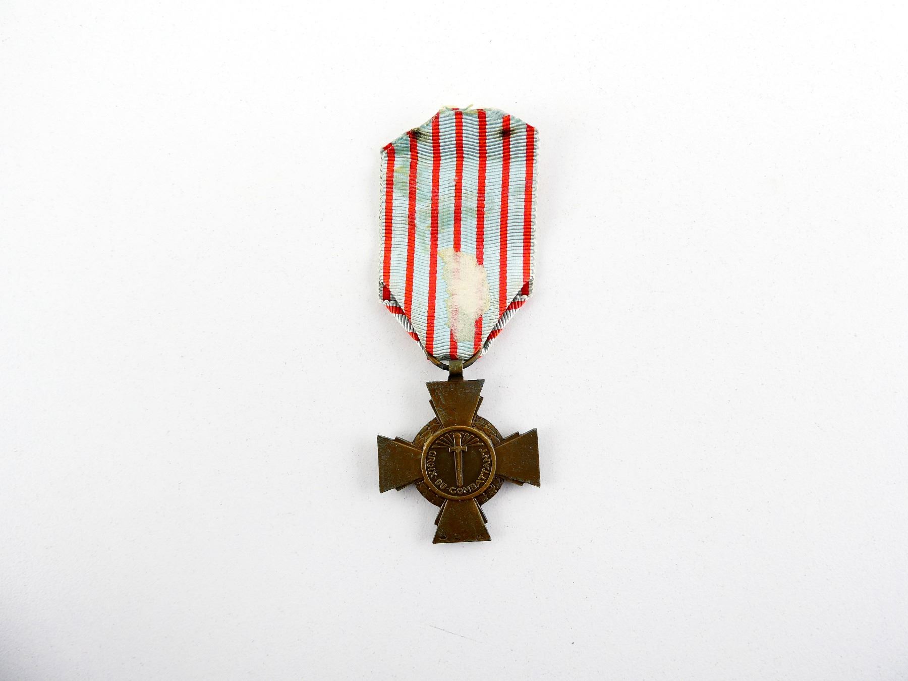 (1) COMBATANT'S CROSS MEDAL WITH RIBBON, RIBBON IS FADED. SEE PHOTOS.