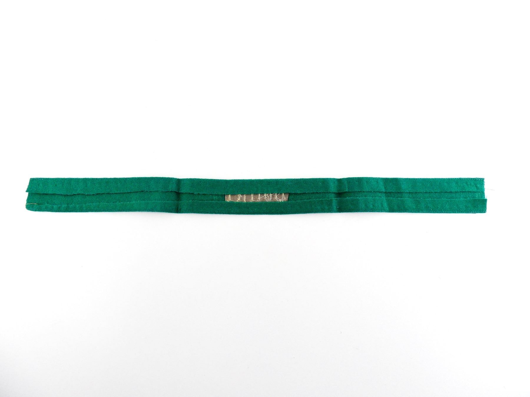 (1) GREEN FELT / WOOL CUFF TITLE MARKED: "POLIZEI" IN SILVER WIRE, NO OTHER VISIBLE MARKINGS, APPROX. 1.5" WIDE, OVERALL LENGTH APPROX. 19". SEE PHOTOS.