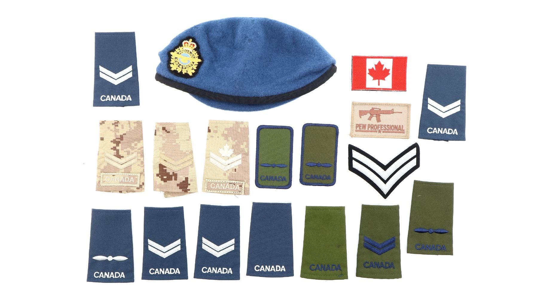 Lot 24078 ASSORTED CANADIAN MILITARY SLIP-ON EPAULETS, BADGES AND BERET LOT