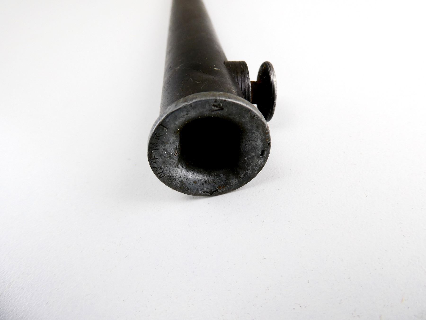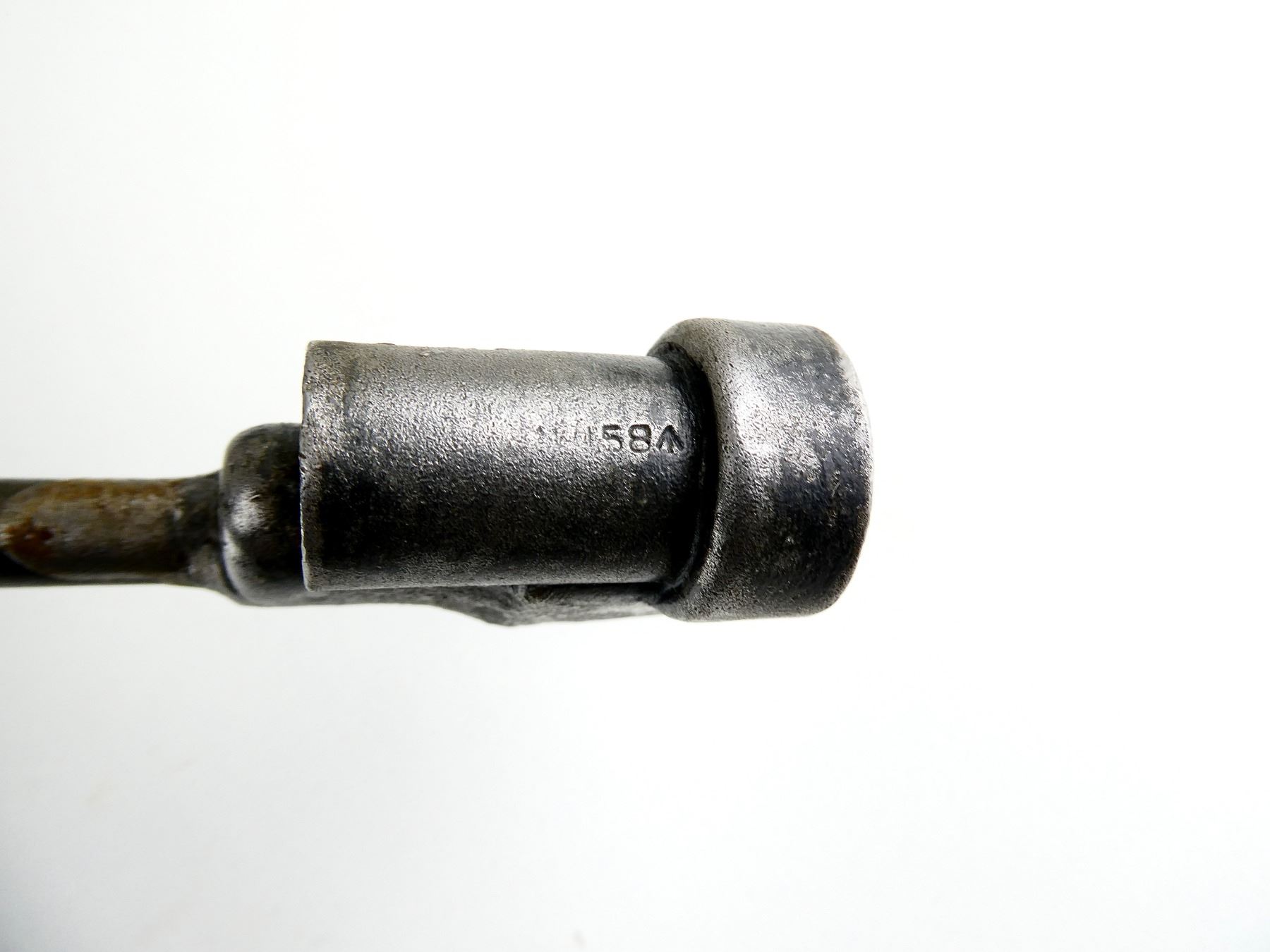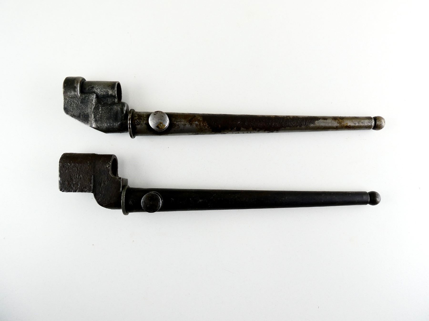 LOT INCLUDES; (1) NO.4 MKII* SPIKE BAYONET, FITS LEE ENFIELD NO.4 MKI & MKII SERIES RIFLES, CATCH RELEASE IS STUCK, SOCKET MARKED: "P.S&S.LTD", "VNS", METAL MKI SCABBARD, THROAT MARKED: "NO4 MKI", BROAD ARROWS, BLADE APPROX. 8", OVERALL LENGTH APPROX. 9 7/8" & (1) NO.4 MKIII SPIKE BAYONET, FITS LEE ENFIELD NO.4 MKI & MKII SERIES RIFLES, CATCH RELEASE IS STUCK, SOCKET MARKED: "M/158" WITH BROAD ARROW, METAL MKI SCABBARD, NO VISIBLE MARKINGS, BLADE APPROX. 8" & OVERALL LENGTH APPROX. 9 7/8". SEE PHOTOS.