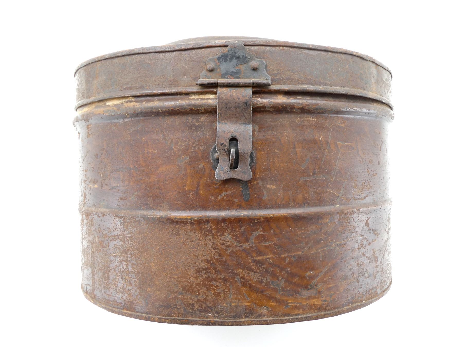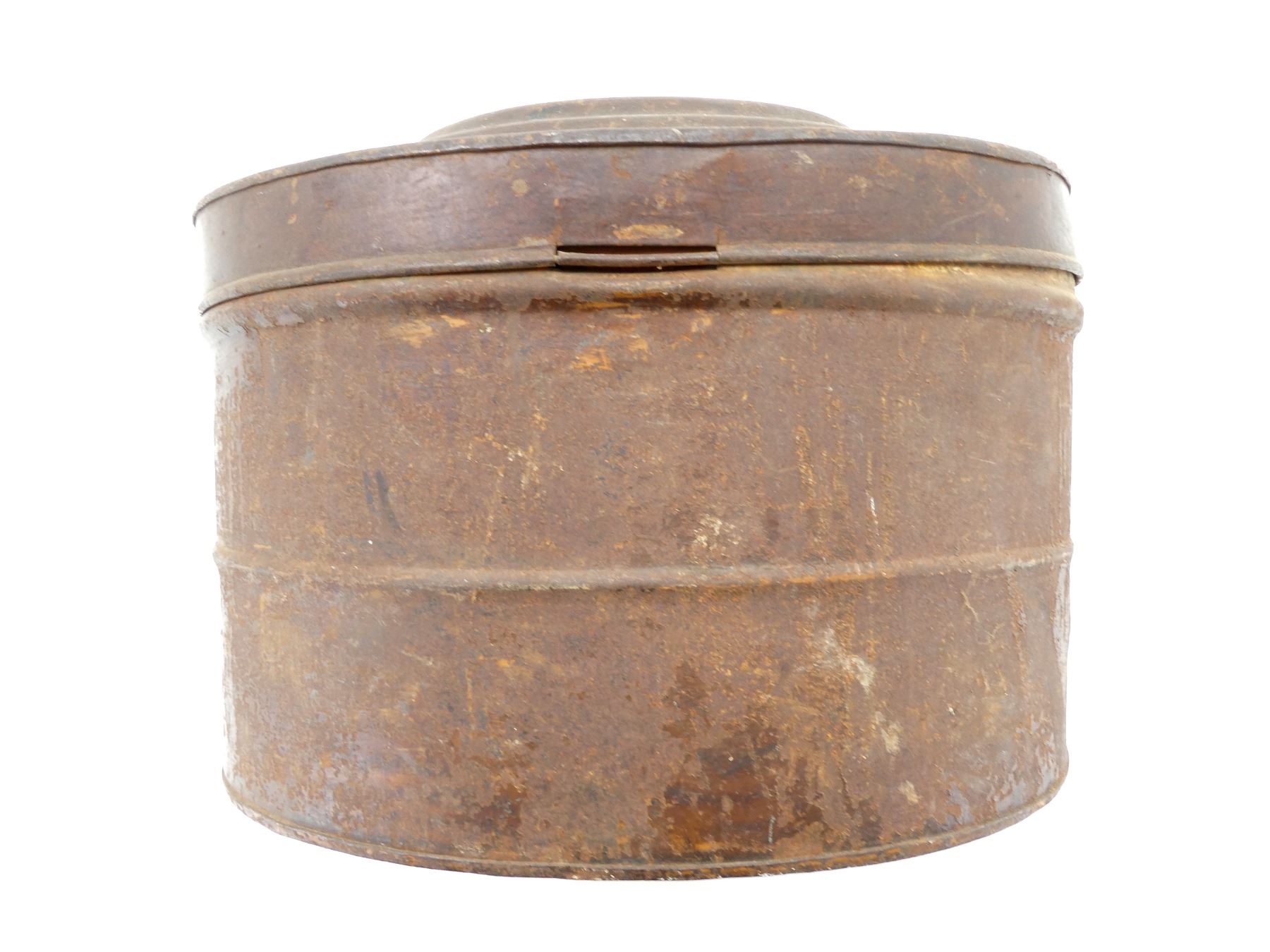 Lot 26002 EARLY 1900'S UNKNOWN MILITARY HEAD WEAR STORAGE TIN