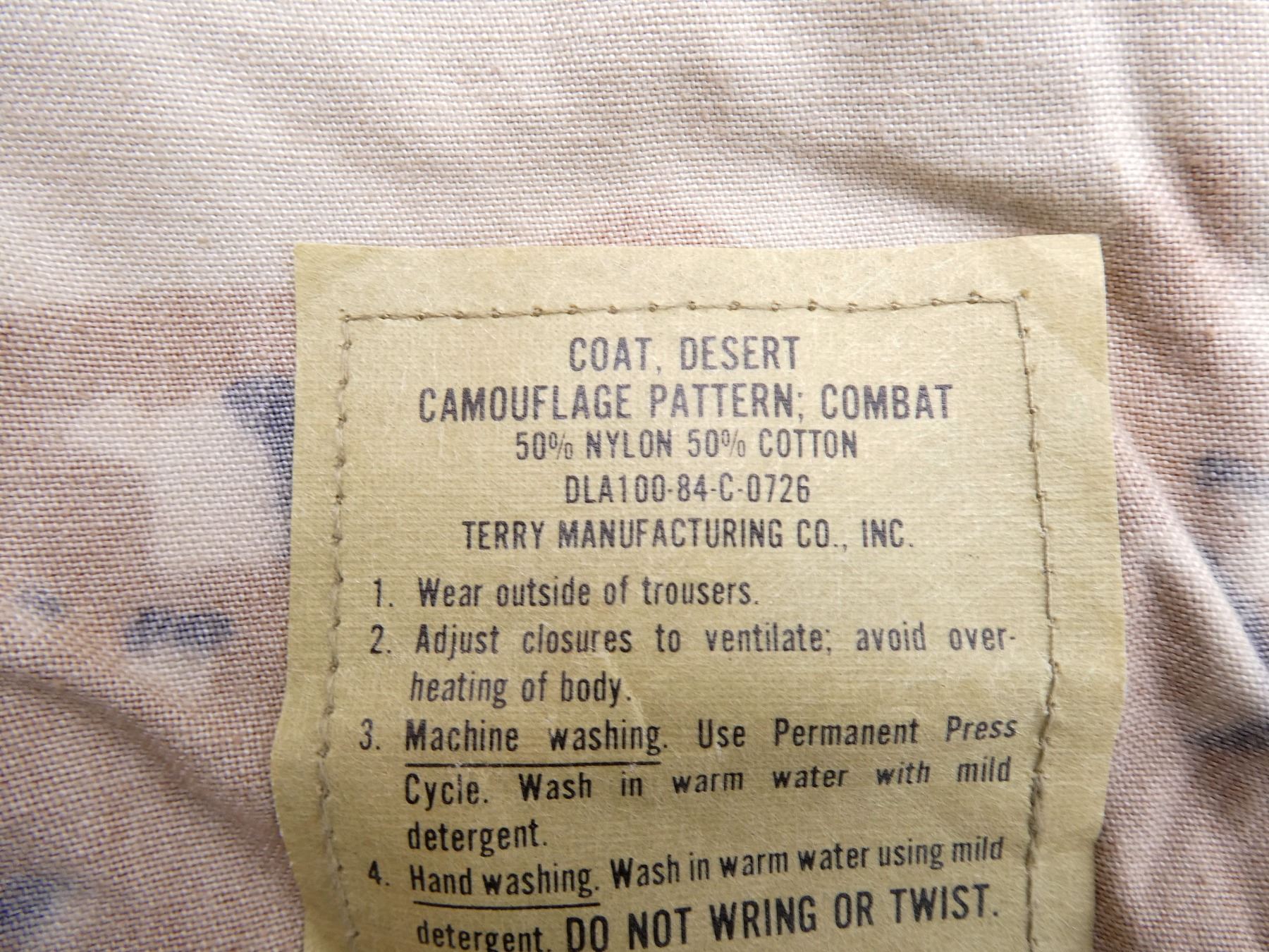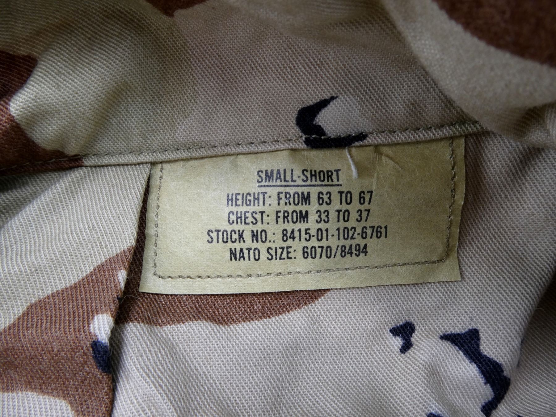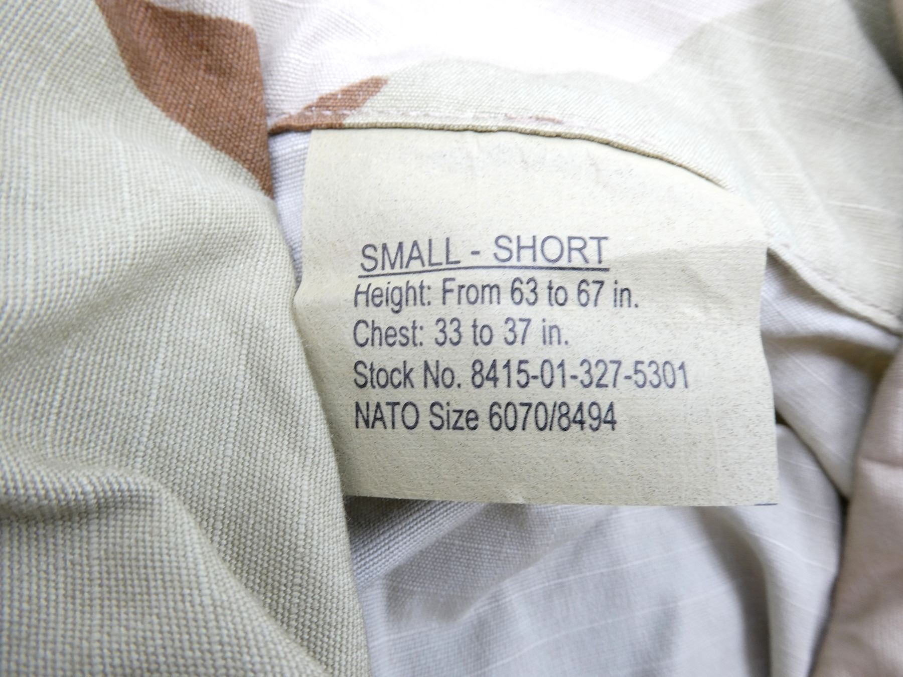 LOT INCLUDES; (2) DESERT CAMO PATTERN COMBAT SHIRTS, LONG-SLEEVED, SIZE XS-SHORT, VARIOUS LABELS & MARKINGS, BUTTON-FRONTS, SHOWS SLIGHT WEAR & (1) TAN SHORT-SLEEVED SHIRT, SIZE MEDIUM, VARIOUS LABELS & MARKINGS, BUTTON-FRONT. SEE PHOTOS.