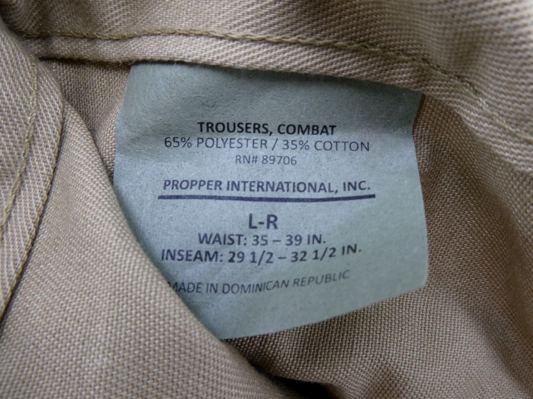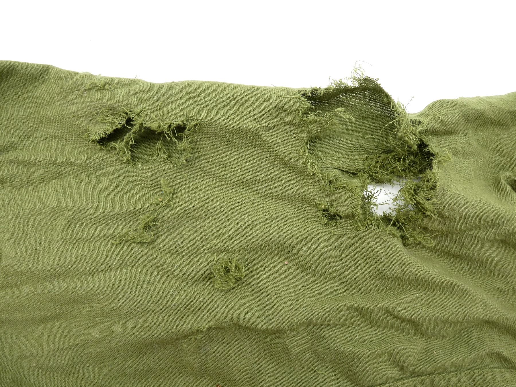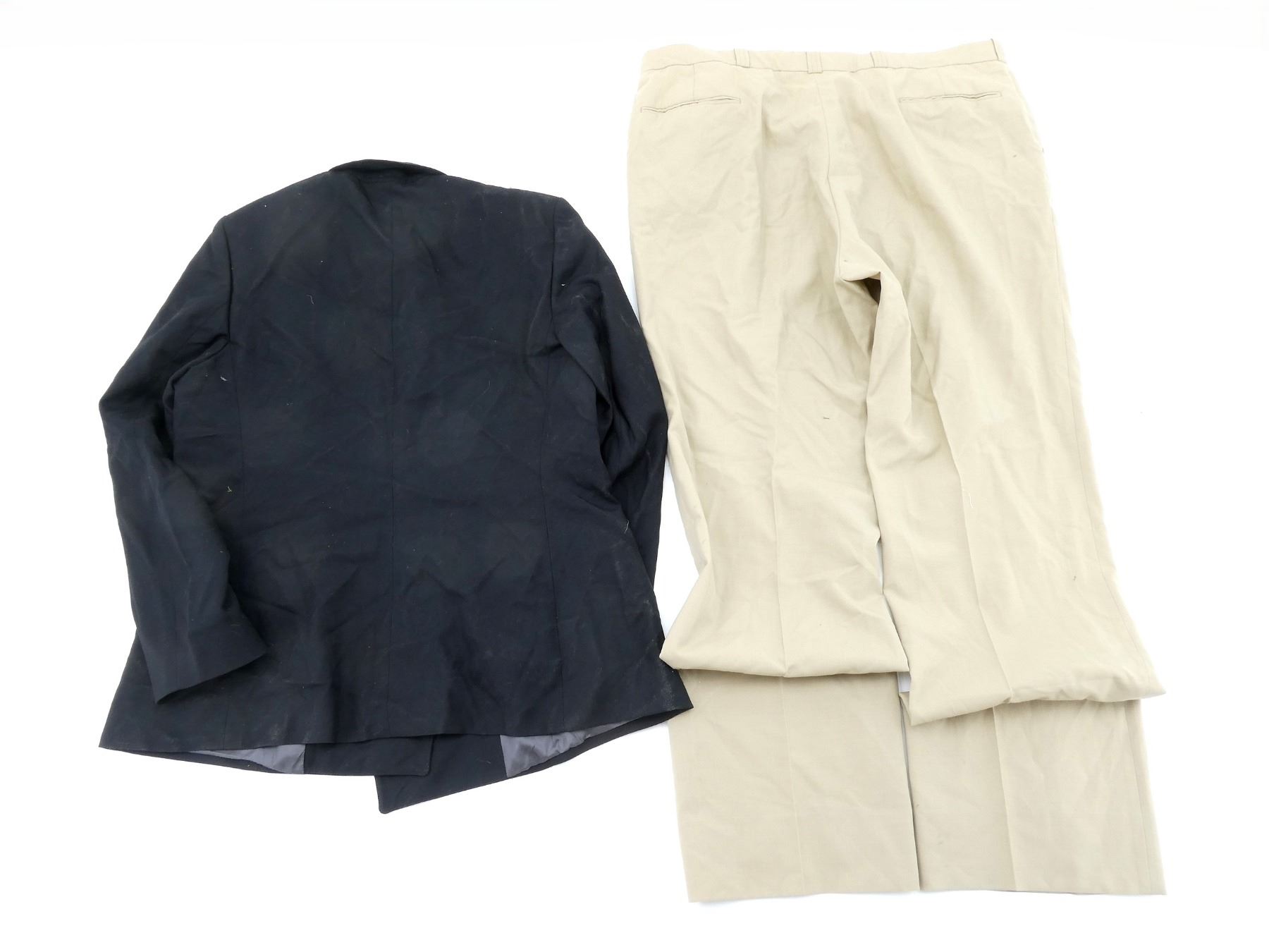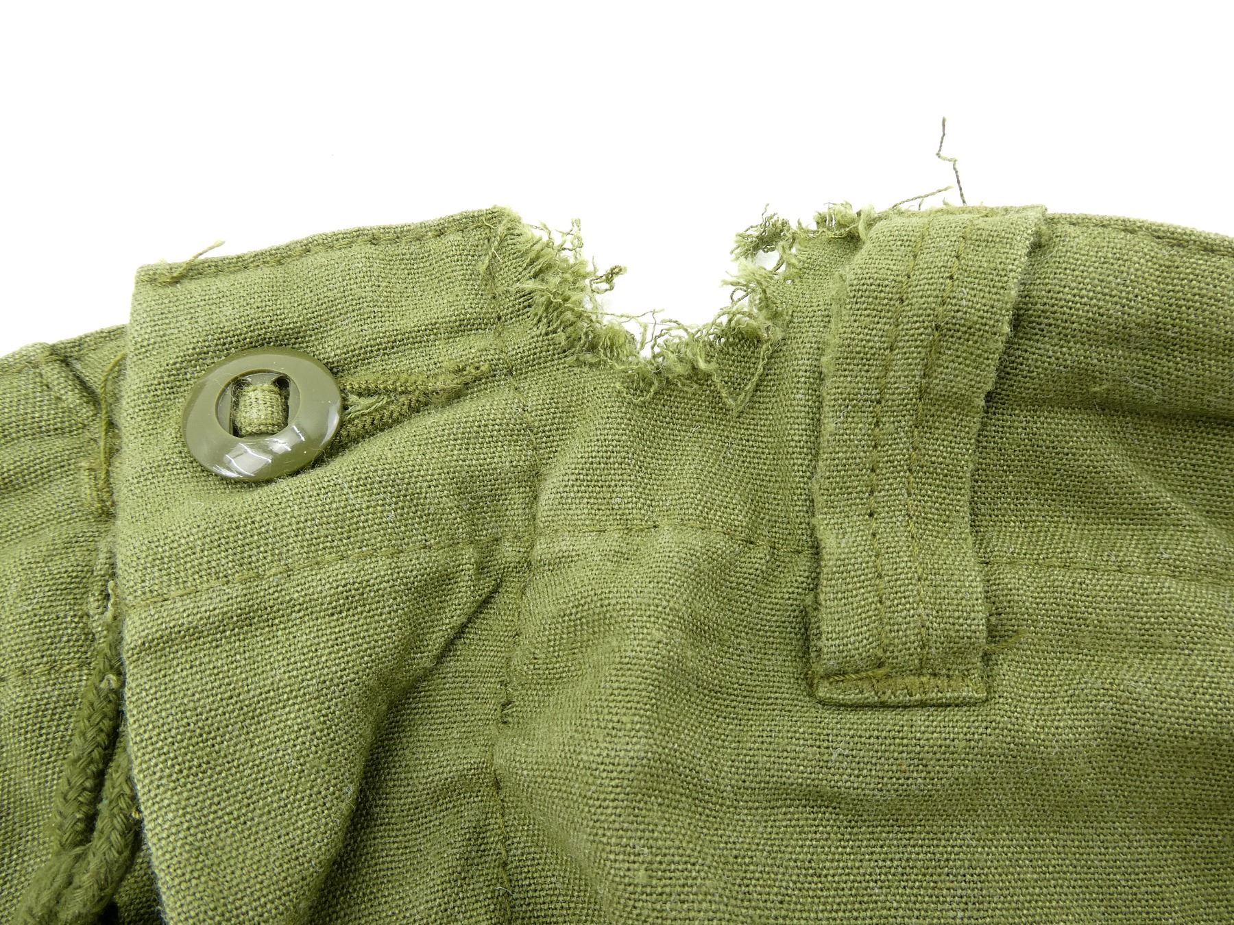 LOT INCLUDES; (1) CANADIAN MILITARY BLACK TUNIC, SIZE 7045 (70" HEIGHT, 45" CHEST), VARIOUS LABELS / MARKINGS, BUTTON-FRONT (MISSING BUTTONS), SHOWS AGE / WEAR, (1) MILITARY STYLE NAVY BLUE VEST, MARKED: "46-42, SAMPLE", VARIOUS OTHER MARKINGS, BUTTON-FRONT (MISSING BUTTONS), SHOWS AGE / WEAR, SHOULDER WIDTH APPROX. 16.5", (1) MILITARY STYLE TAN COMBAT SHORTS, SIZE L-R (WAIST 35"-39"), MARKED: "GENUINE GEAR", VARIOUS OTHER LABELS / MARKINGS, ZIPPERED-FLY (WORKS), SHOWS SLIGHT WEAR, (1) CANADIAN MILITARY TAN LIGHTWEIGHT LAND PANTS, SIZE 7643 (6'4" HEIGHT, 43" WAIST), VARIOUS LABELS / MARKINGS, ZIPPERED-FRONT (WORKS), SHOWS SLIGHT WEAR & (1) RCAF GREEN FLIGHT / TACTICAL HELICOPTER PANTS, MARKED: "TROUSER/PANTALON TAC HELI F.R., NSN: 8415-20-000-4683" ETC., SIZE 7634 (6'4" HEIGHT, 34" WAIST), VARIOUS LABELS / MARKINGS, ZIPPERED-FLY (WORKS), ALL OTHER ZIPPERS APPEAR TO WORK, ONE WITH BROKEN PULL TAB, SHOWS AGE / WEAR / TEAR. SEE PHOTOS.