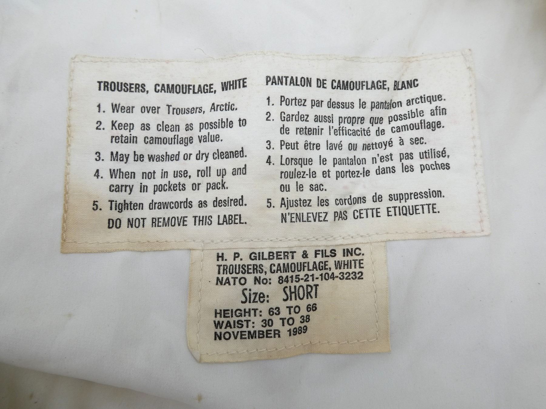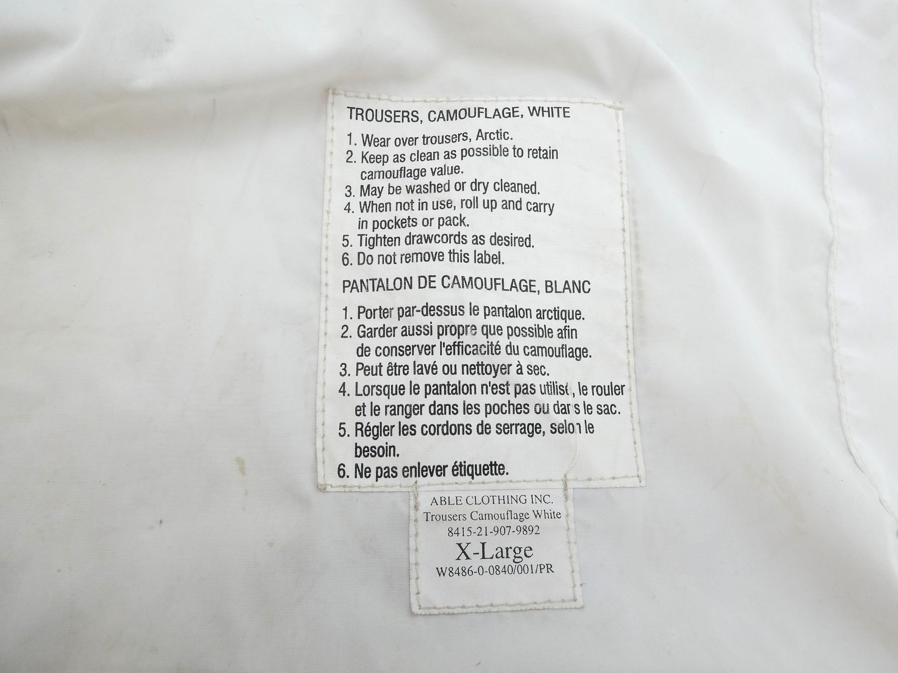 ASSORTED CANADIAN / U.S. MILITARY WHITE CAMO / WINTER CLOTHING LOT