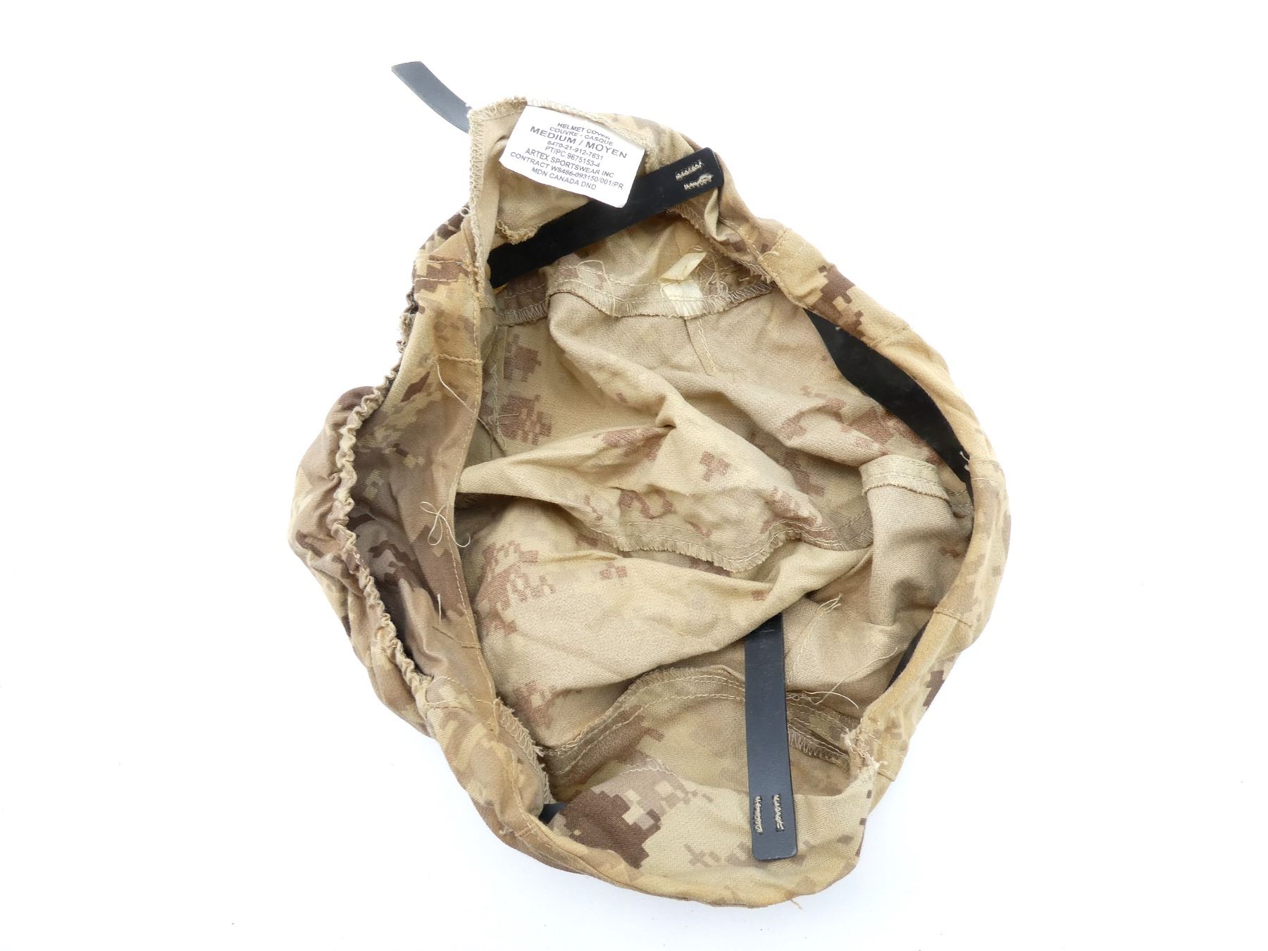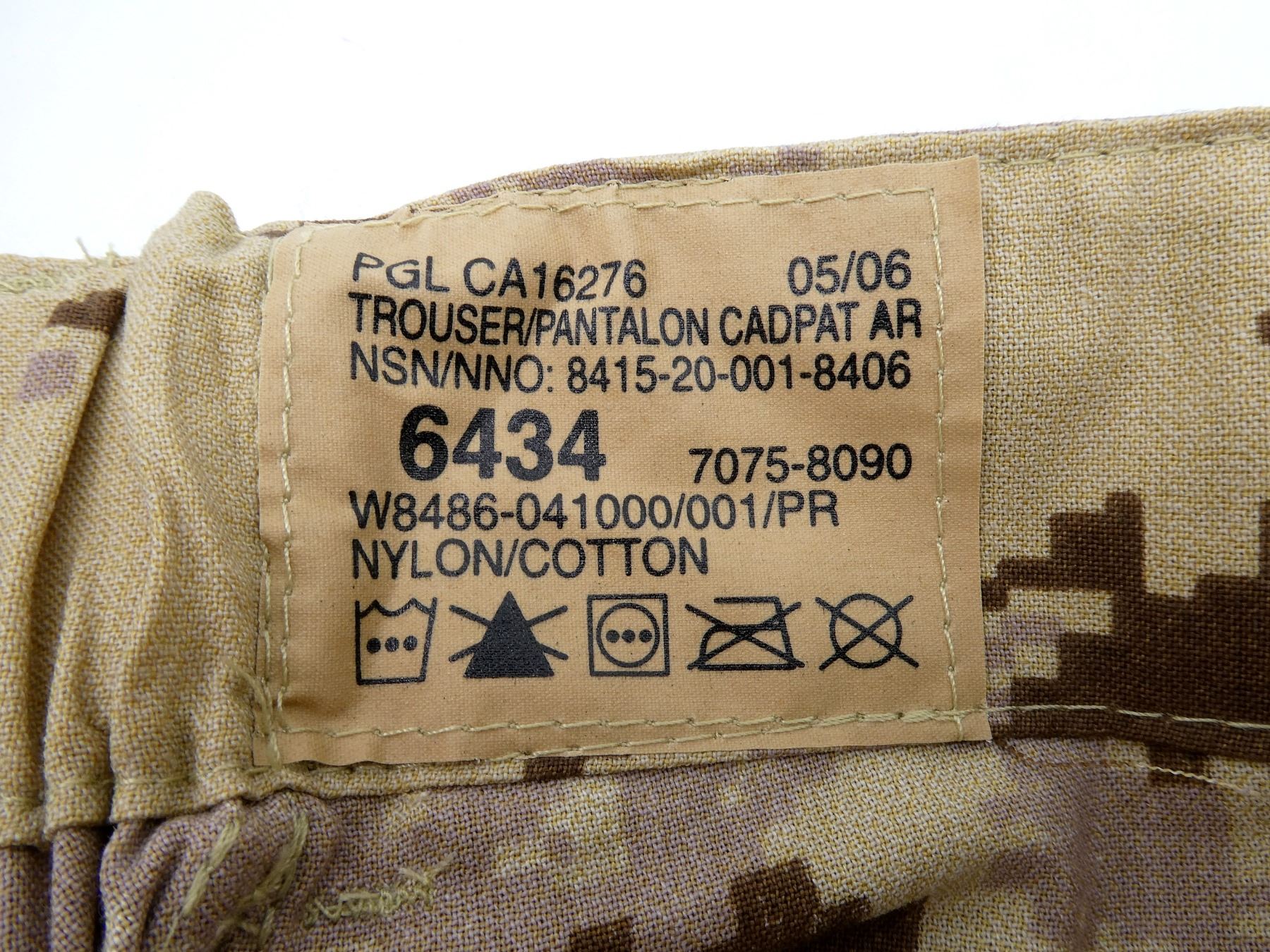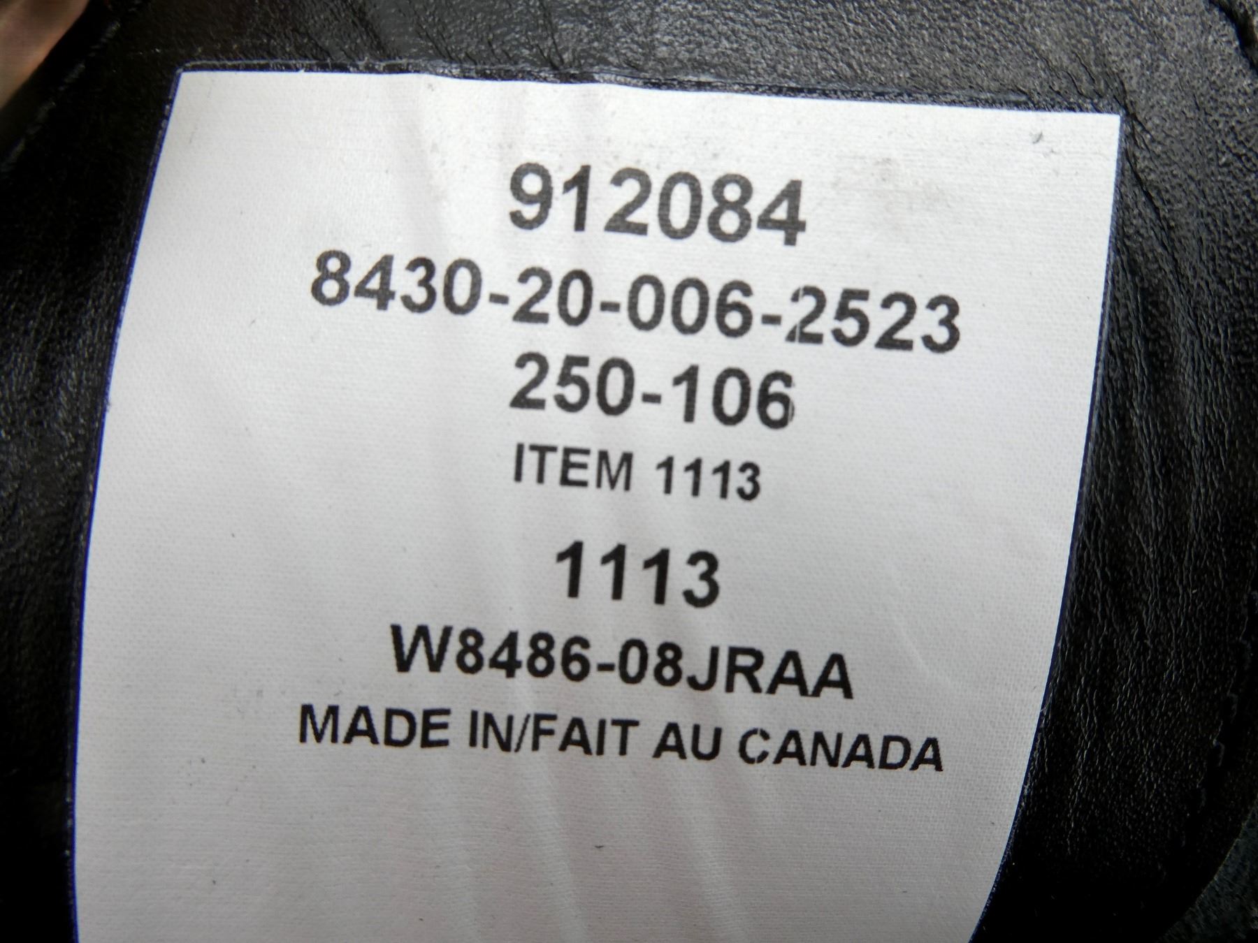 LOT INCLUDES; (2) CANADIAN MILITARY TAN CADPAT AR PANTS, SIZE 6434 (64" HEIGHT, 34" WAIST), CONSIGNOR STATES: "NEVER ISSUED", VARIOUS LABELS / MARKINGS, ZIPPERED-FLY (WORKS), (1) CANADIAN MILITARY TAN CADPAT AR COAT, SIZE 6740 (67" HEIGHT, 40" CHEST), VARIOUS LABELS / MARKINGS, BUTTON-FRONT, SHOWS WEAR, (1) CANADIAN MILITARY BLACK LEATHER BOOTS, SIZE 250-106, MARKED: "912084, 8430-20-006-2523, 250-106, ITEM 1113, 1113" ETC., ONE SHOE LACE, WIDEST PART OF SOLE APPROX. 4", SOLE OVERALL LENGTH APPROX. 11.5", (1) CANADIAN MILITARY TAN CADPAT HELMET COVER, SIZE MEDIUM, VARIOUS LABELS / MARKINGS & (1) COLUMBIAN ARMY MULTI-CAMO SHIRT, SIZE XL, MARKED: "XL", NO OTHER VISIBLE MARKINGS, PARTIALLY ZIPPERED-FRONT (WORKS). SEE PHOTOS.