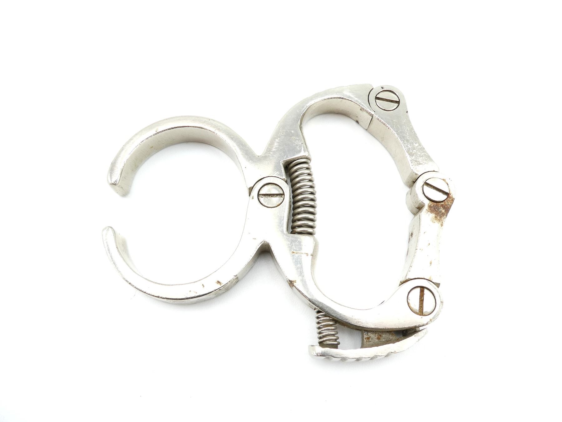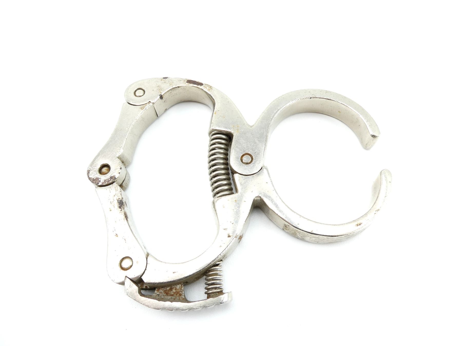 (1) ALSO KNOWN AS A "COME ALONG", STEEL CONSTRUCTION, NO VISIBLE MARKINGS, WORKS, APPROX. 2.5" INNER WIDTH OF CUFF, OVERALL LENGTH APPROX. 5 3/8". SEE PHOTOS.