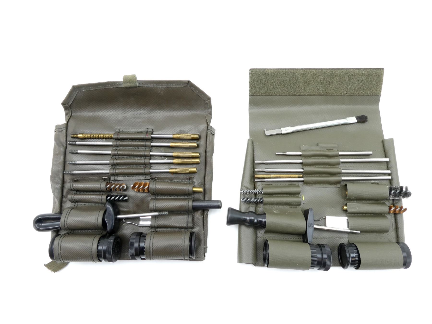 LOT INCLUDES; (2) CLEANING KITS, FITS SCHMIDT-RUBIN K11 & K31 RIFLES, GREEN NYLON CLEANING KIT COMES WITH RODS, OILERS, BRUSHES, CHAMBER MIRROR, ETC. SEE PHOTOS.