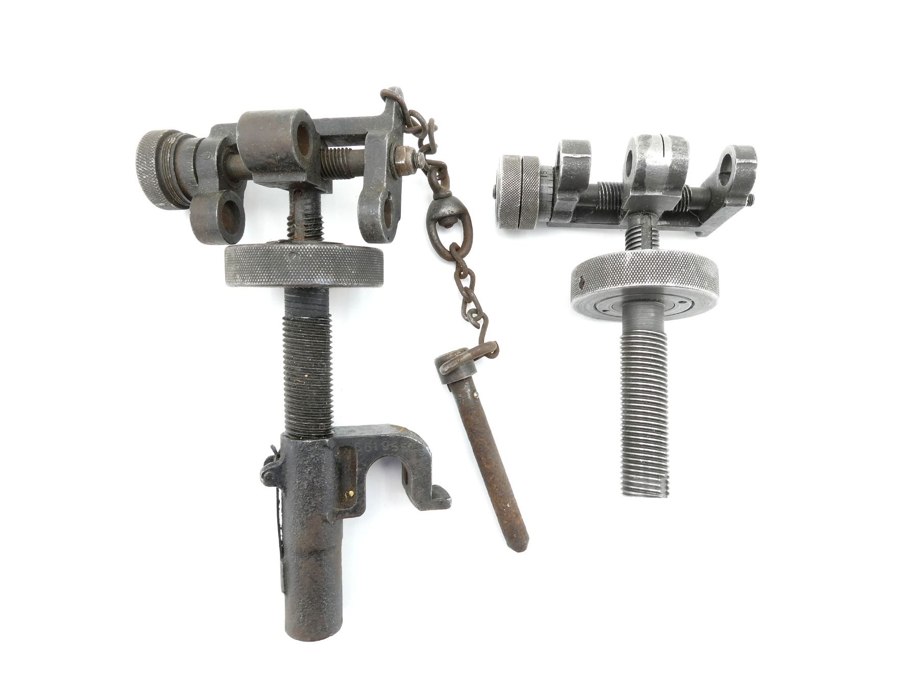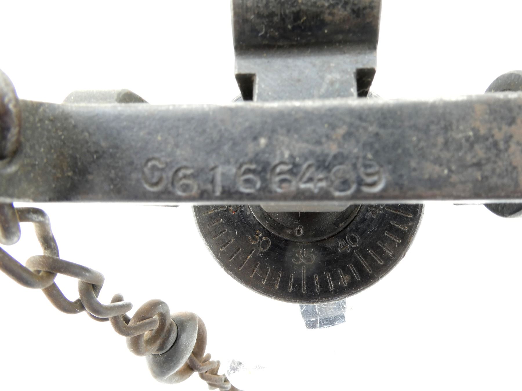 LOT INCLUDES; (2) FITS .30 CAL. MACHINE GUNS, MOUNTS ON REAR OF TRIPOD, INCOMPLETE, ADJUSTABLE, ONE MARKED: "C6166489", OTHER MARKED: "6166489". SEE PHOTOS.