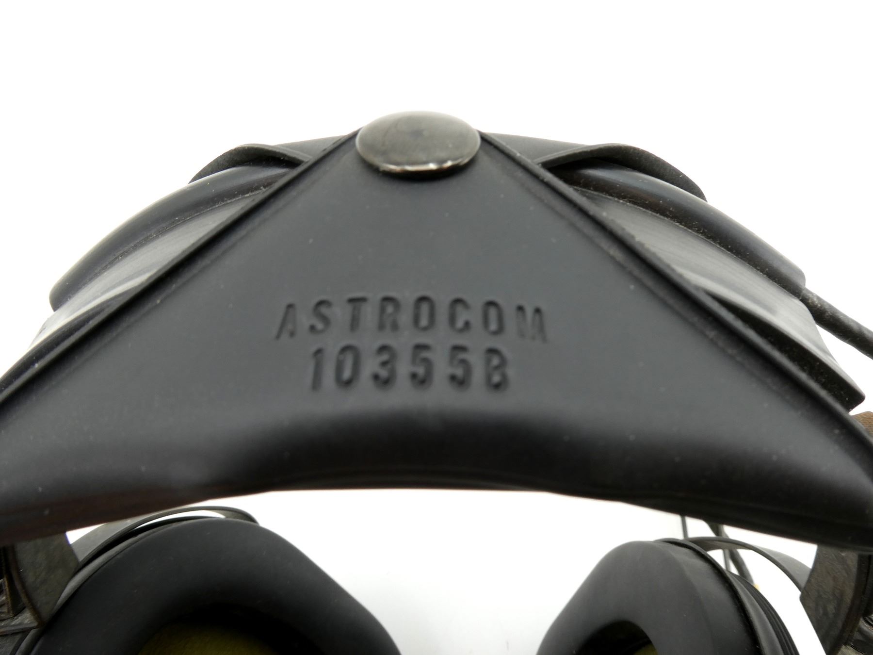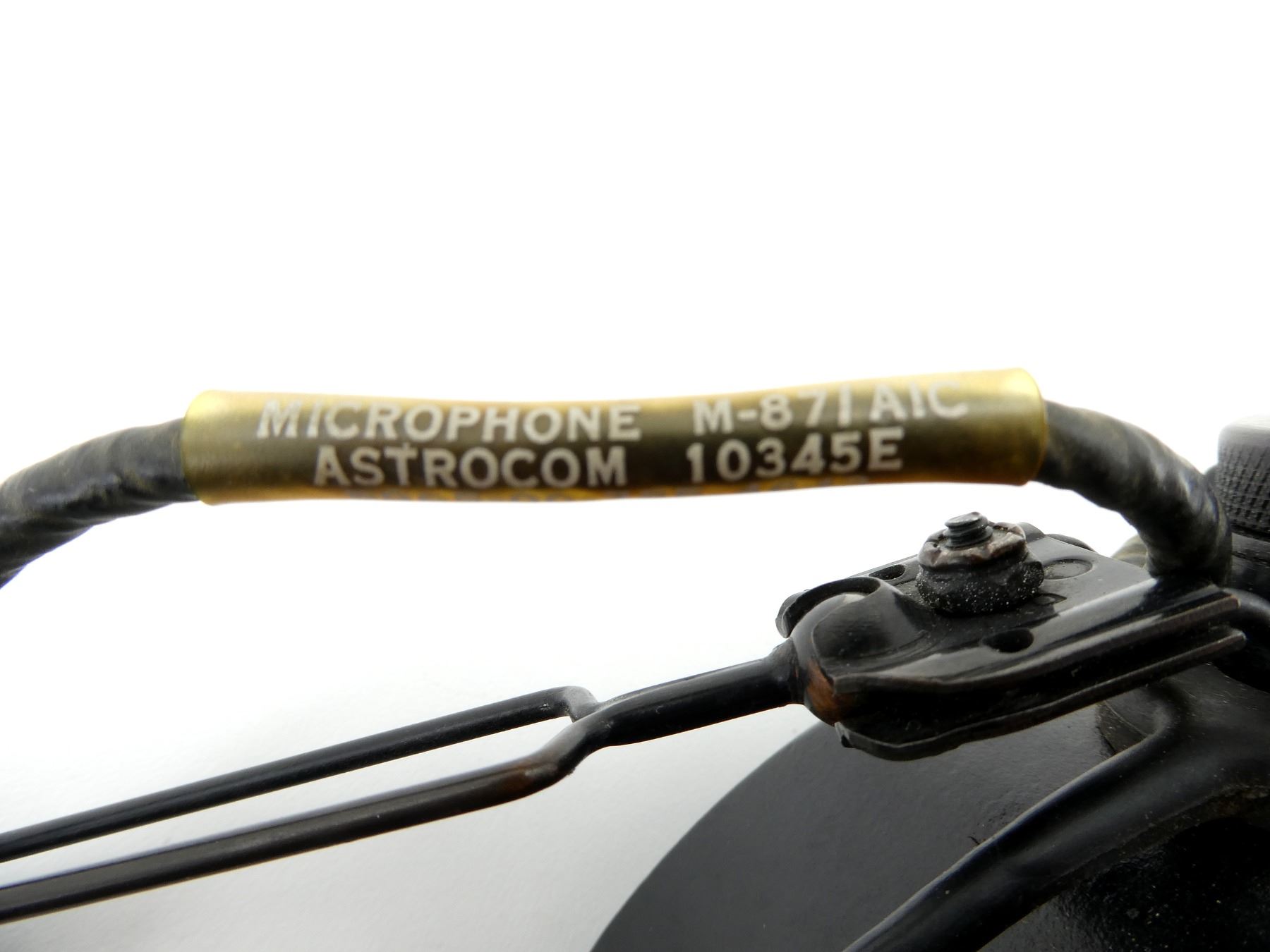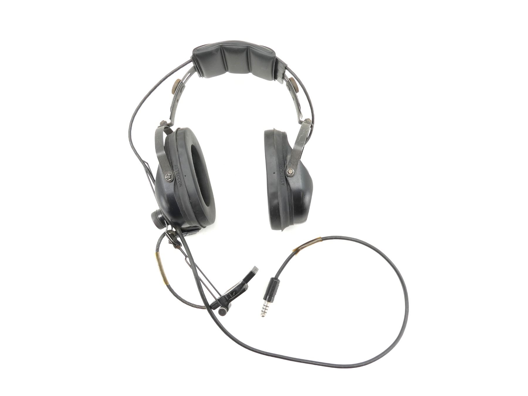 (1) HEADSET MARKED: "ASTROCOM", "10391B", "MICROPHONE M-87/AIC, ASTROCOM, 10345E, 5965-00-755-4643", WITH CONNECTOR CABLE, UN-TESTED, SHOWS AGE / WEAR. SEE PHOTOS.