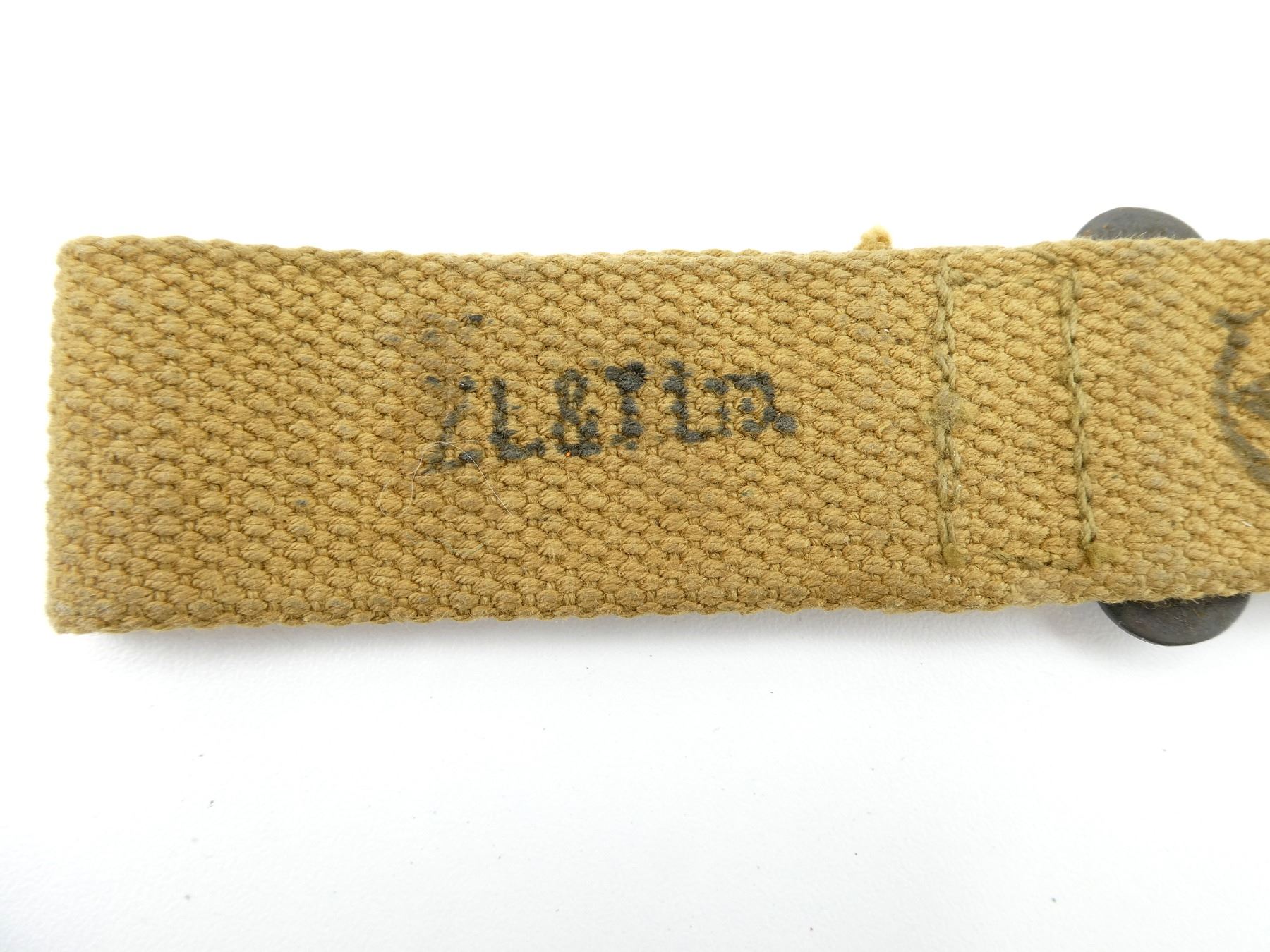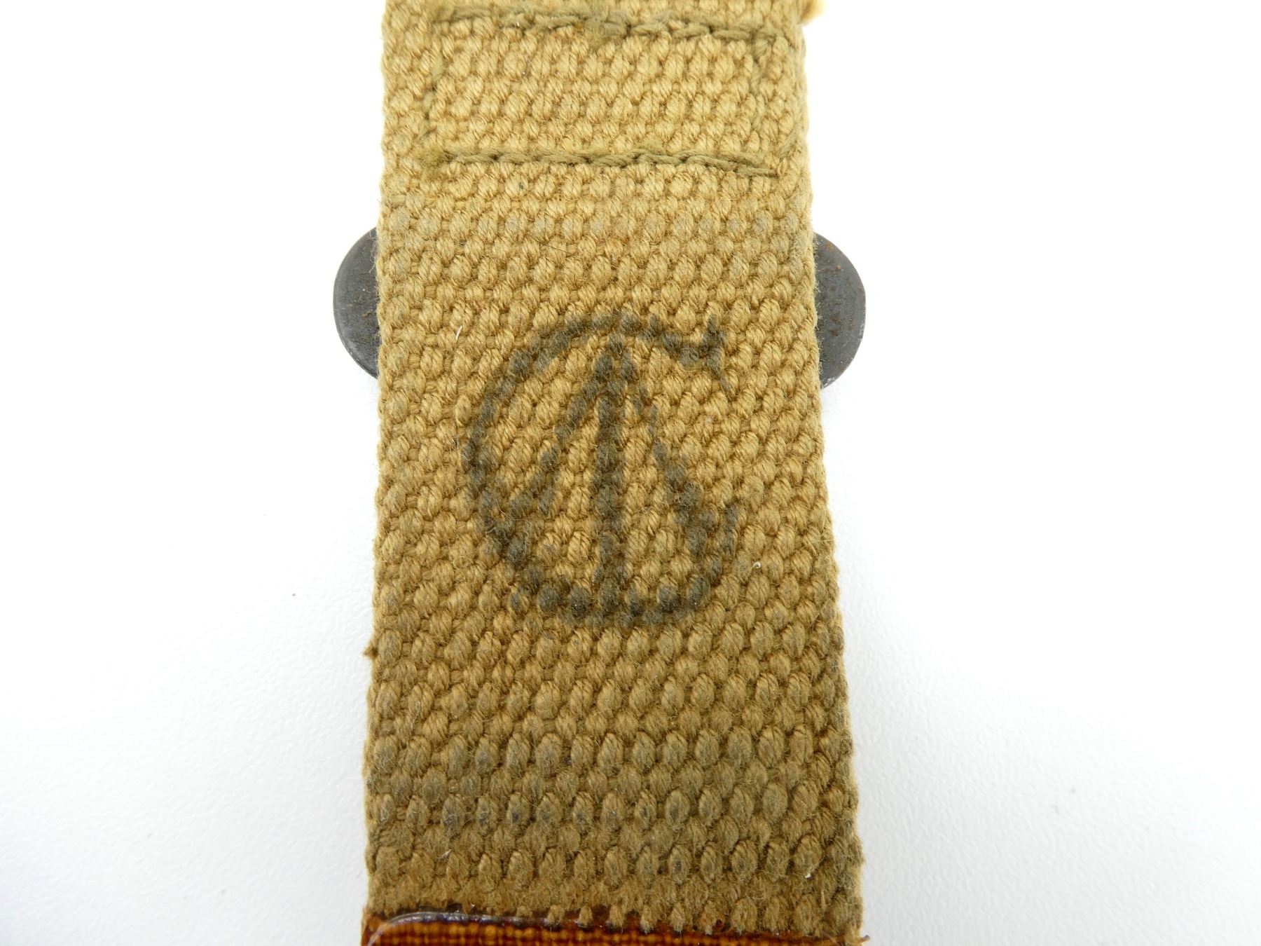 (1) P37 TAN WEB WITH METAL CLIP, MARKED: "Z.L.&T.LTD. (ZEPHA LOOM & TEXTILES)" & C-BROAD ARROW, (EARLY VERSION), OVERALL LENGTH APPROX. 6.25". SEE PHOTOS.