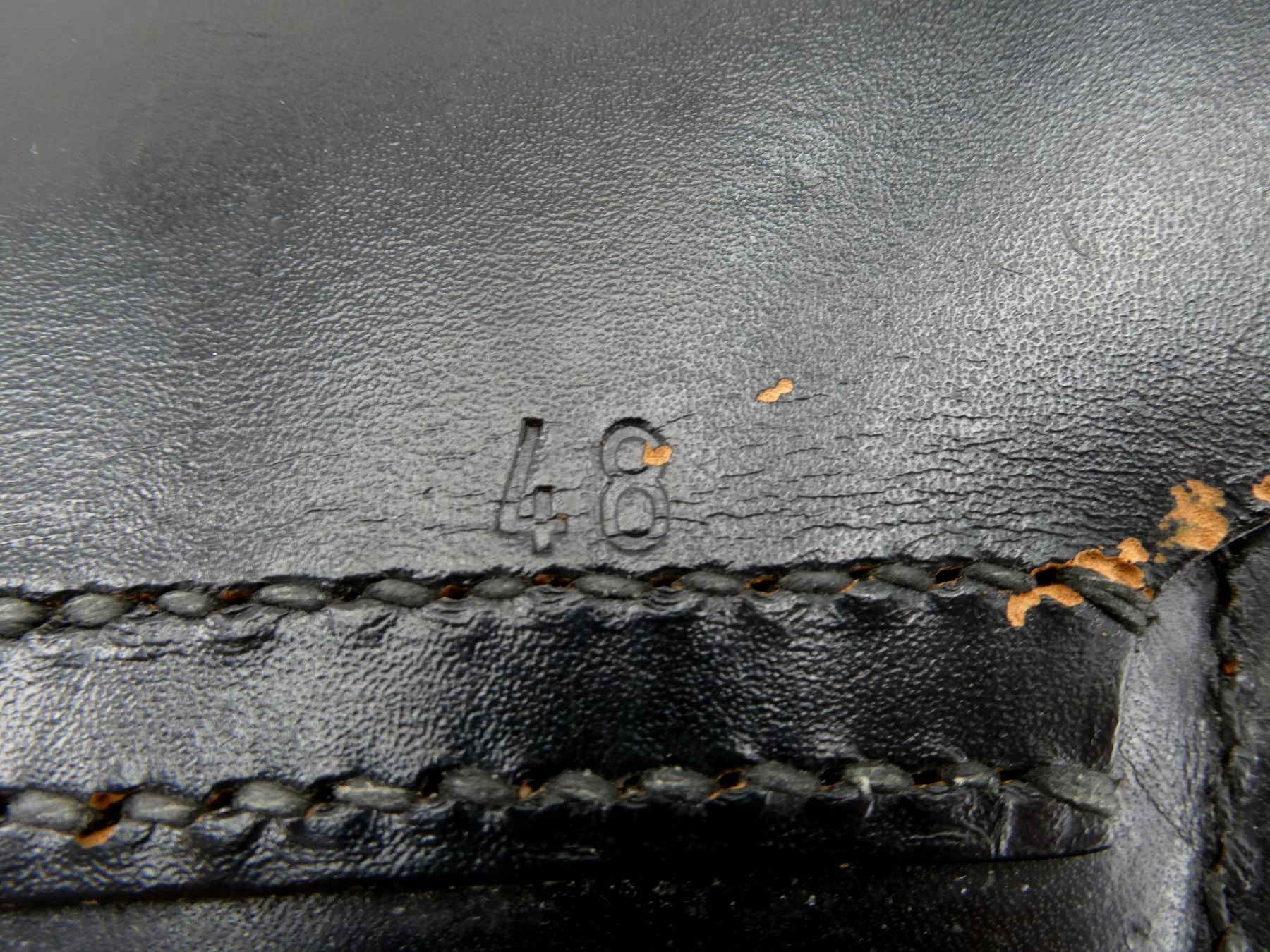 (1) FITS WALTHER P1 9MM PISTOLS, BLACK LEATHER WITH MAGAZINE SLEEVE, MARKED: "48" ON BACK, NO OTHER VISIBLE MARKINGS. SEE PHOTOS.