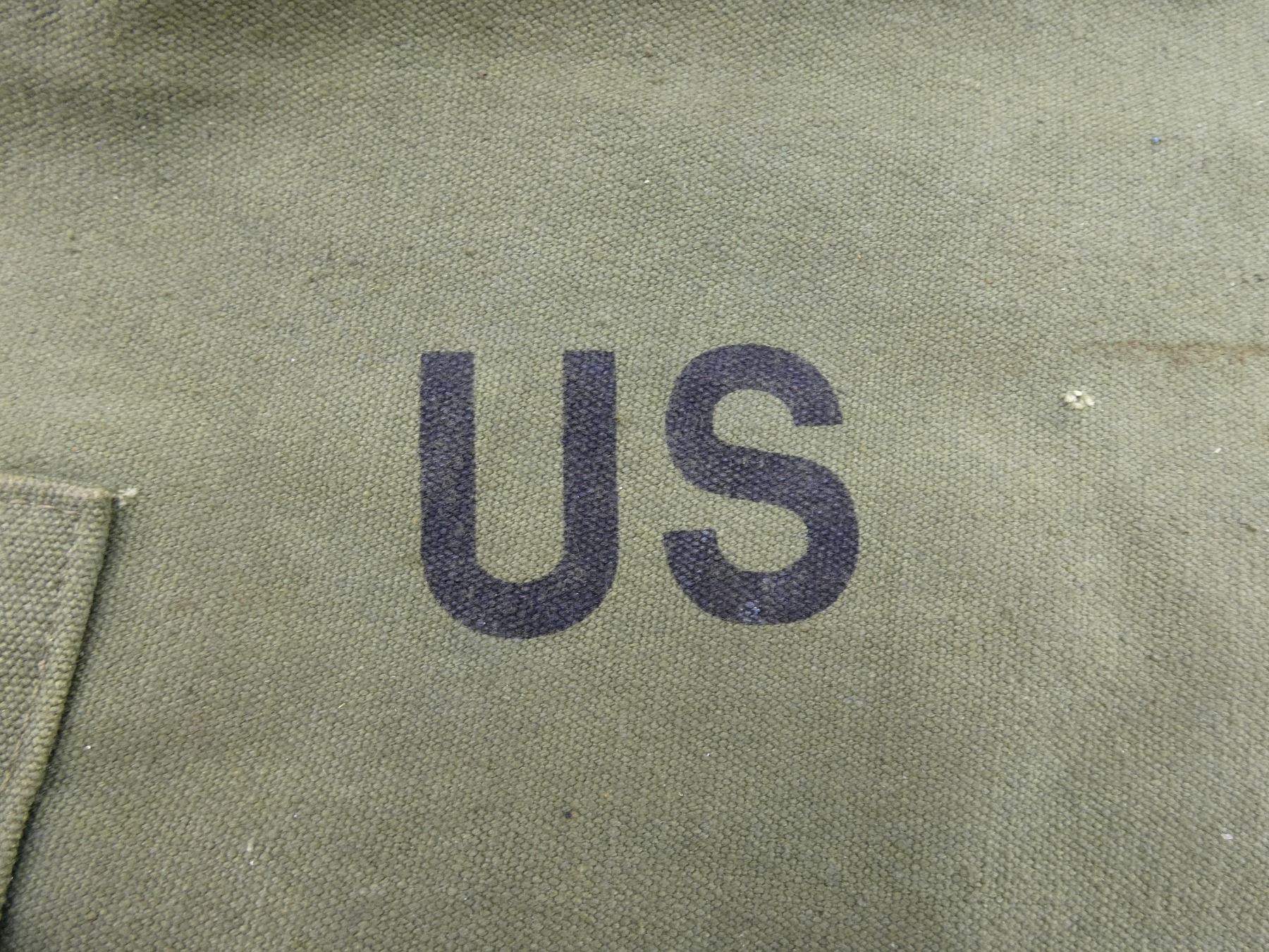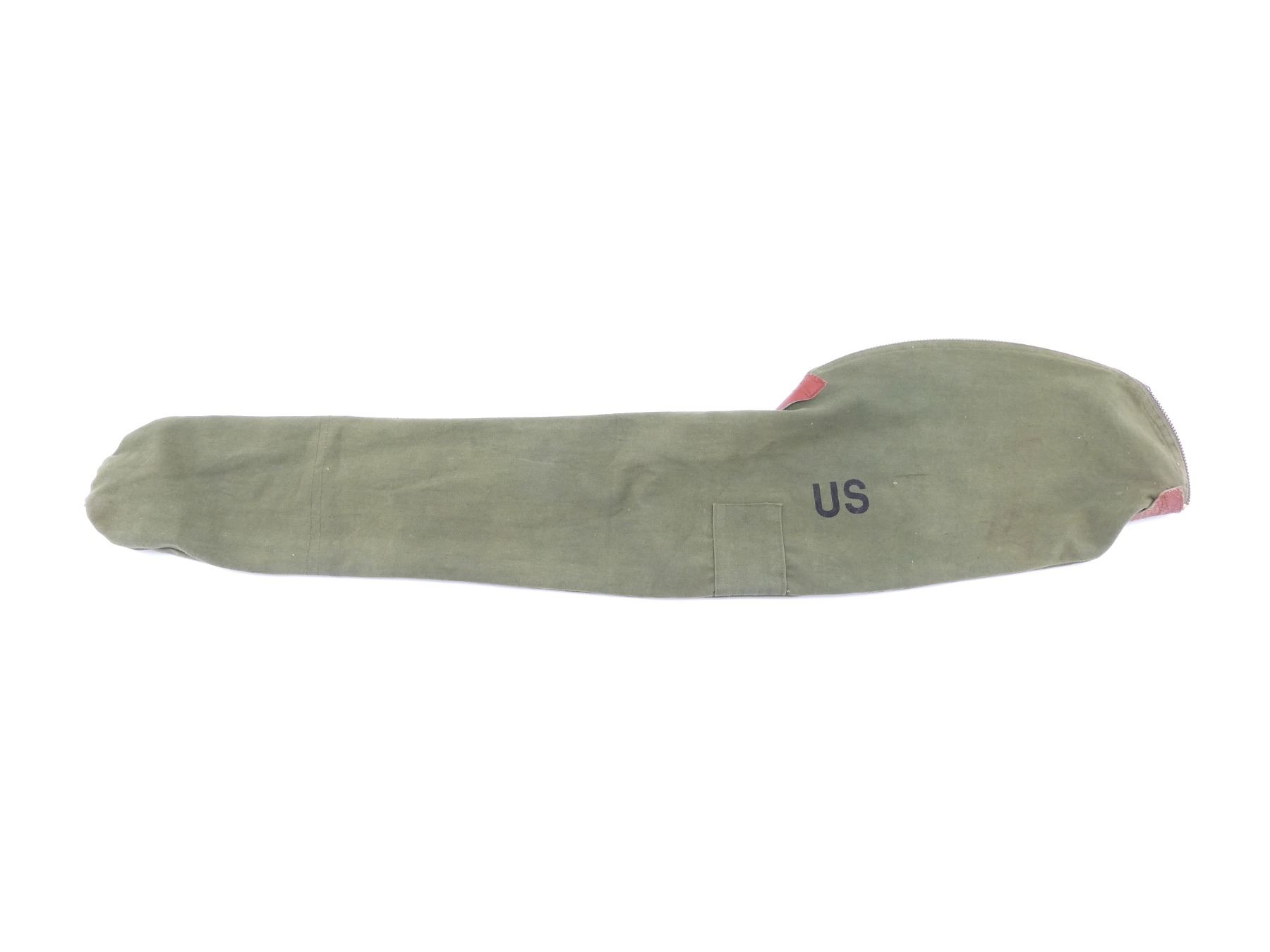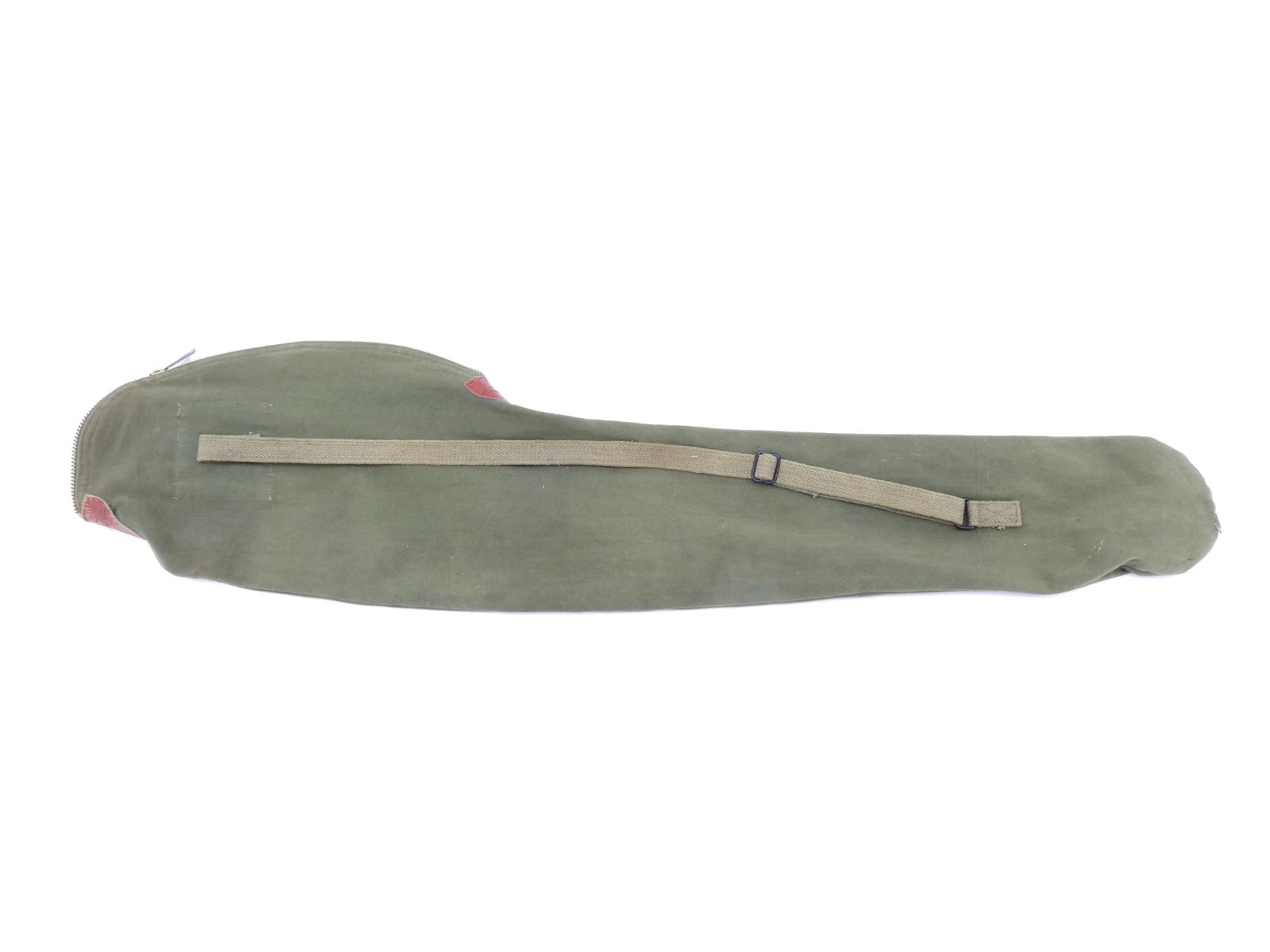 (1) REPRODUCTION GREEN CANVAS RIFLE CASE WITH SHOULDER STRAP, ZIPPERED (WORKS), MARKED: "US", OVERALL LENGTH APPROX. 45.5". SEE PHOTOS.