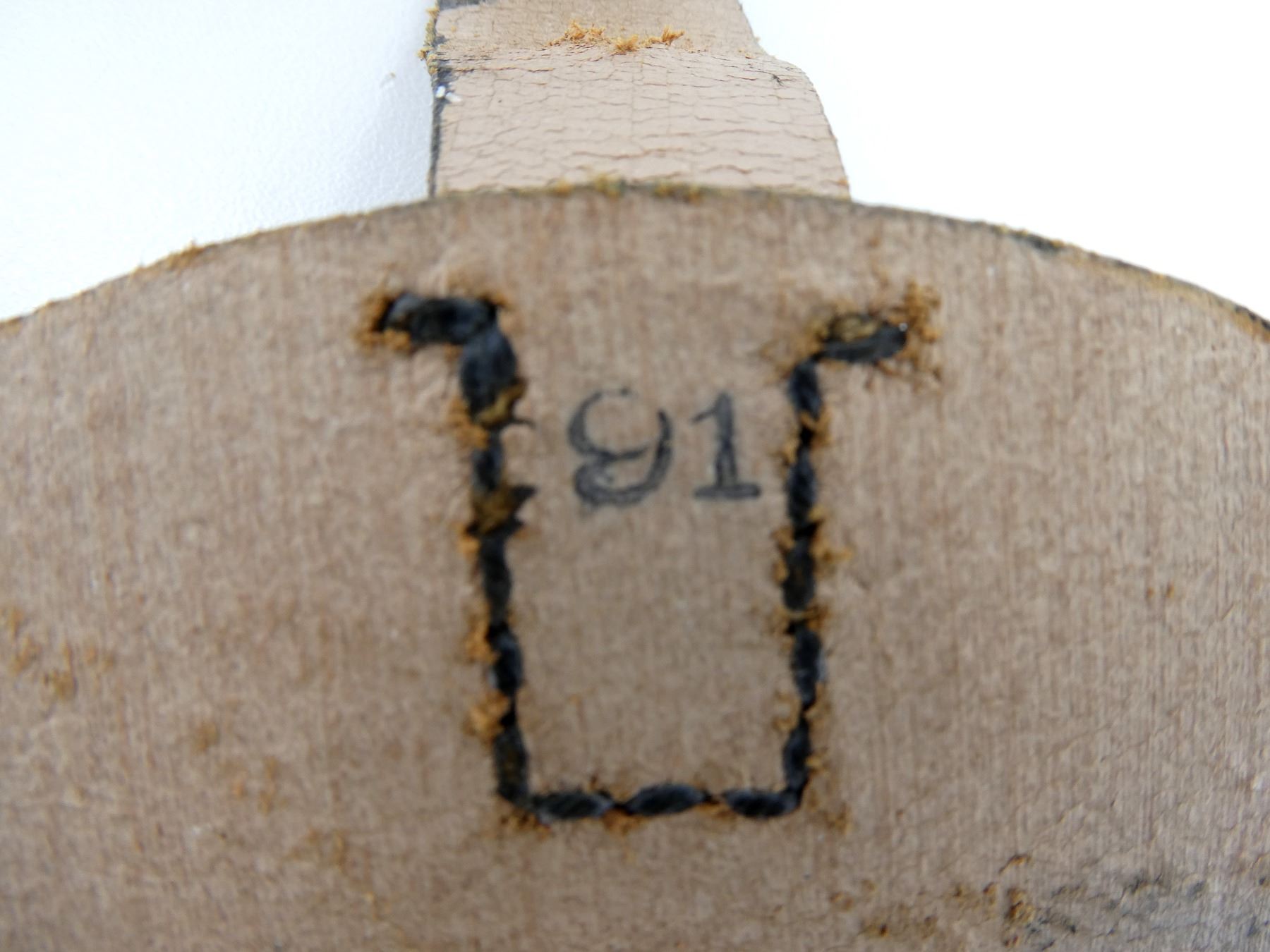 (1) BLACK LEATHER DOUBLE-POCKET MAG POUCH, MARKED: "91", METAL FITTINGS, TWO BELT LOOPS, SHOWS SLIGHT AGE / WEAR. SEE PHOTOS.