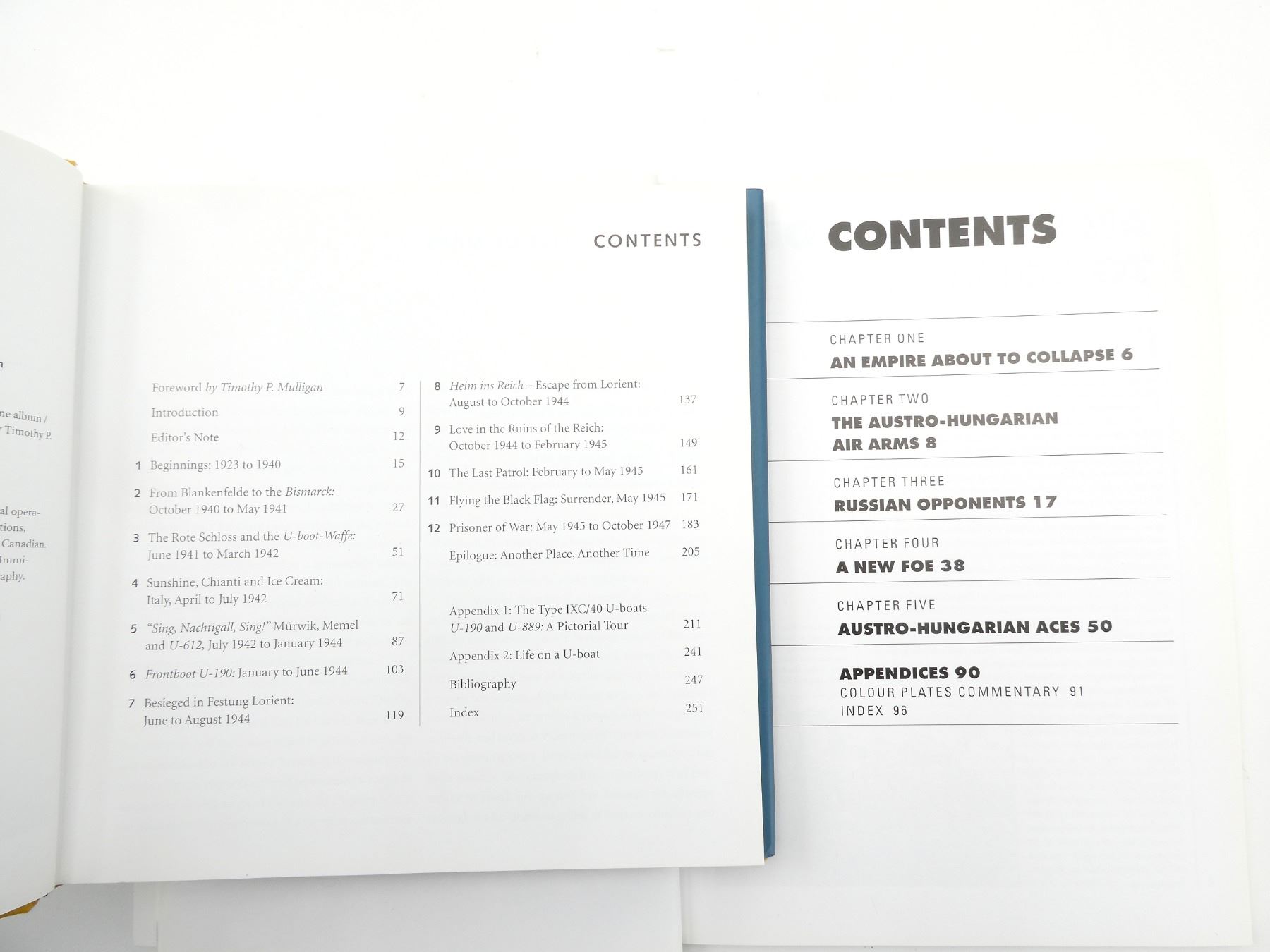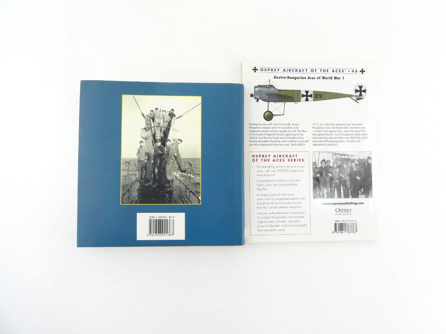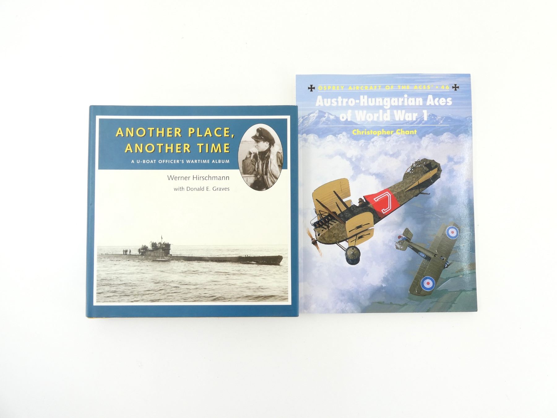 LOT INCLUDES; (1) "OSPREY AIRCRAFT OF THE ACES 46, AUSTRO-HUNGARIAN ACES OF WORLD WAR 1" BOOK BY CHRISTOPHER CHANT, SOFT COVER, ISBN: 1-84176-376-4 & (1) "ANOTHER PLACE, ANOTHER TIME, A U-BOAT OFFICER'S WARTIME ALBUM" BOOK BY WERNER HIRSCHMANN, HARD COVER WITH DUST COVER, ISBN: 1-896941-38-9. SEE PHOTOS.