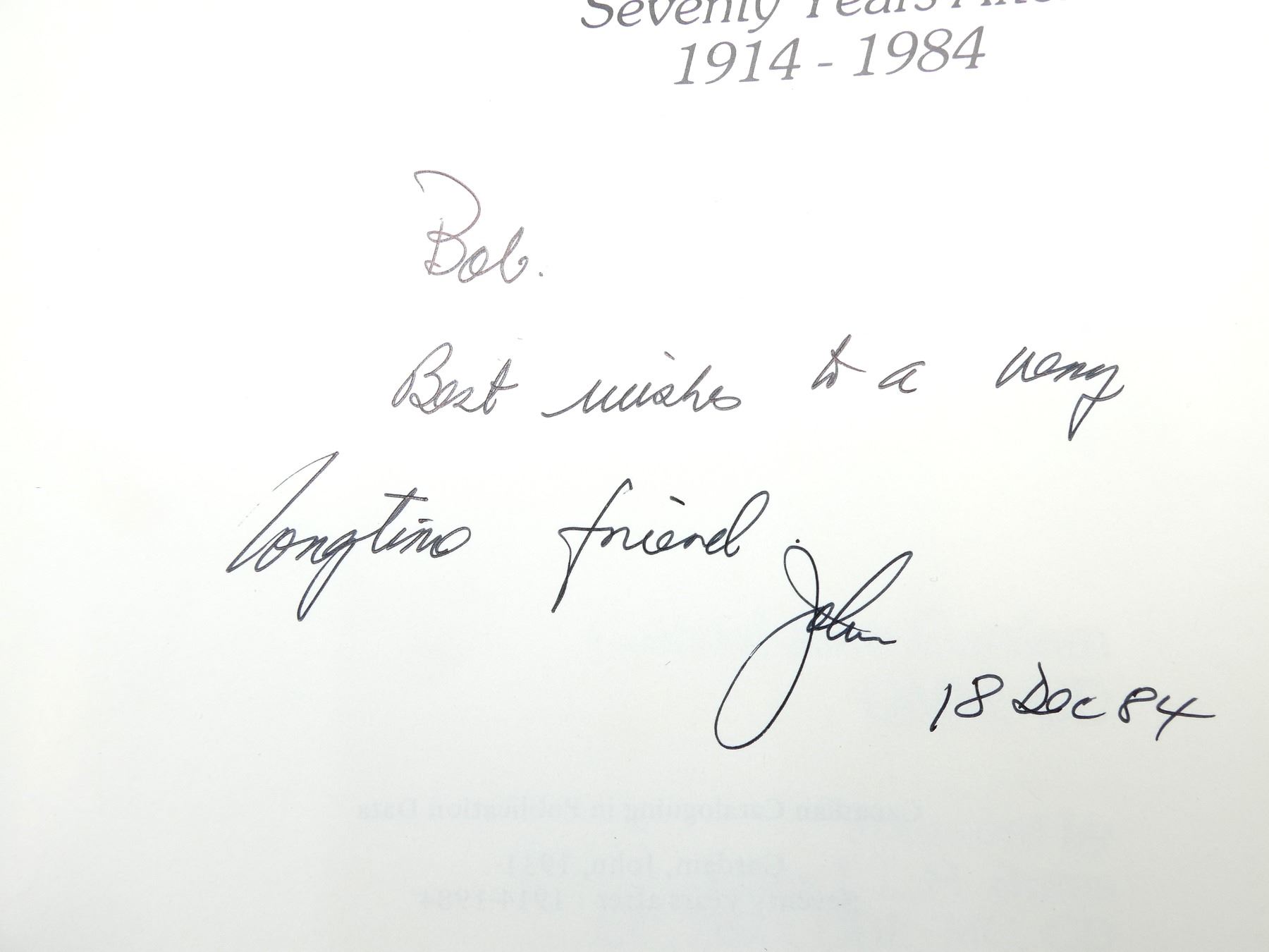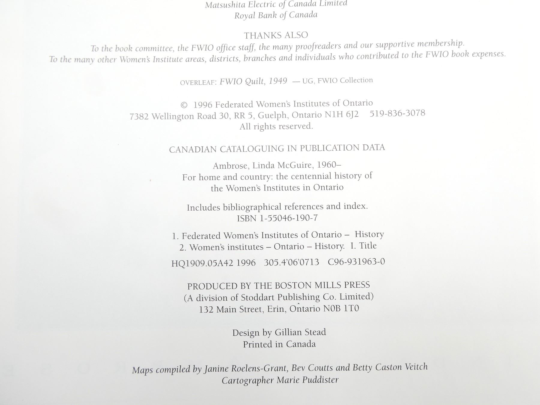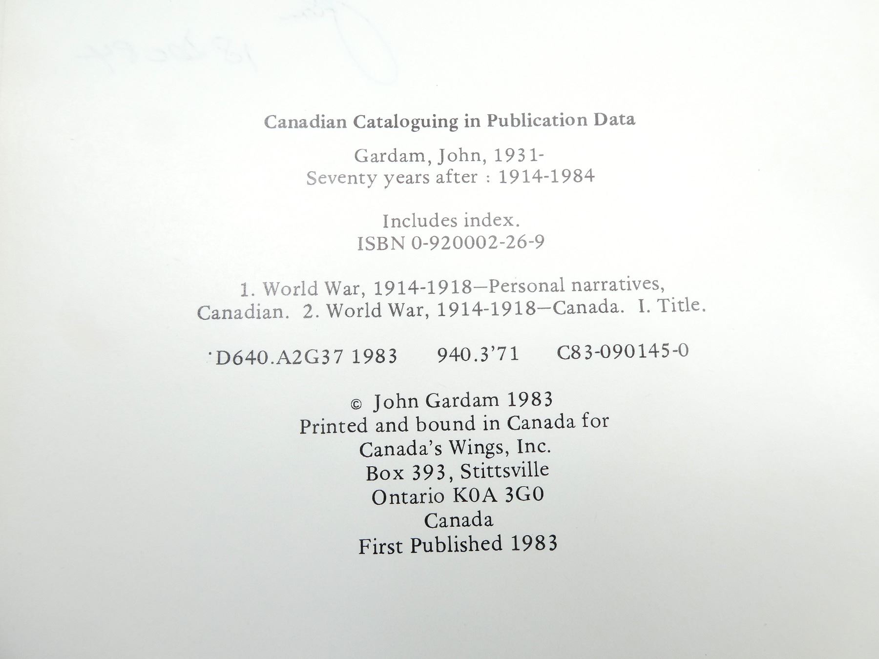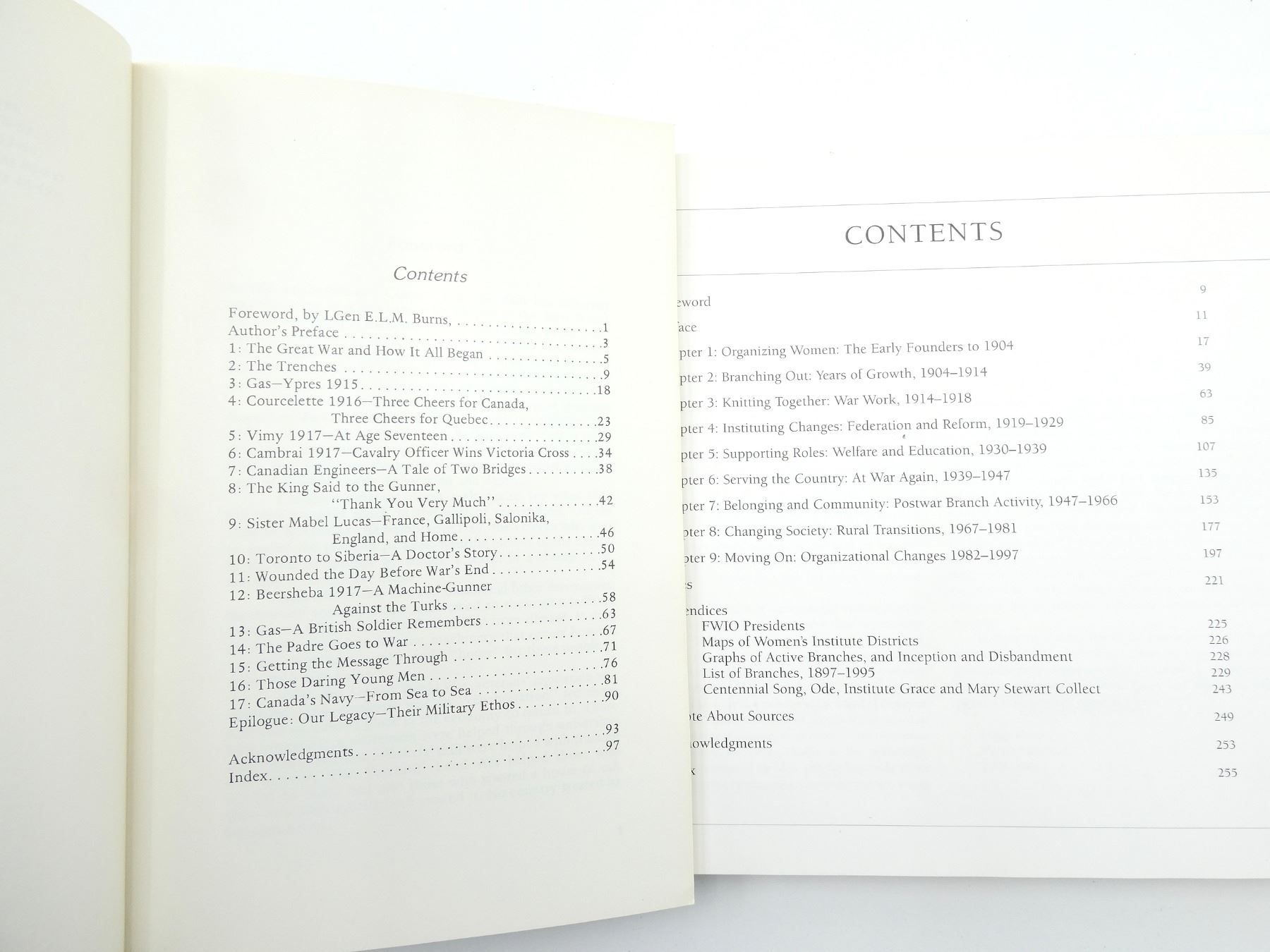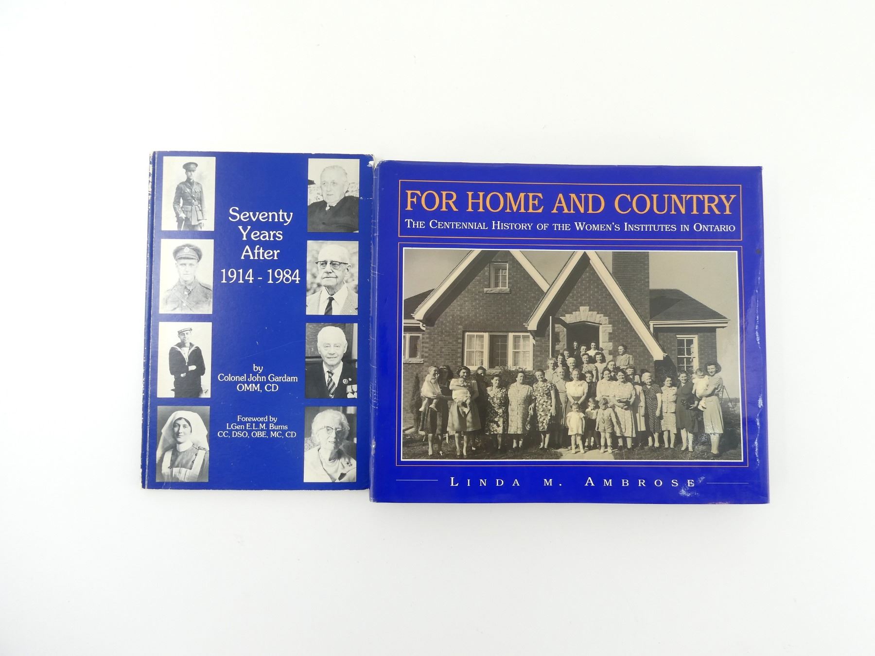 LOT INCLUDES; (1) "SEVENTY YEARS AFTER 1914-1984" BOOK BY COLONEL JOHN GARDAM OMM, CD, INSCRIBED BY AUTHOR, SOFT COVER, ISBN: 0-920002-26-9 & (1) "FOR HOME AND COUNTRY, THE CENTENNIAL HISTORY OF THE WOMEN'S INSTITUTES IN ONTARIO" BOOK BY LINDA M. AMBROSE, HARD COVER WITH DUST COVER, ISBN: 1-55046-190-7. SEE PHOTOS.