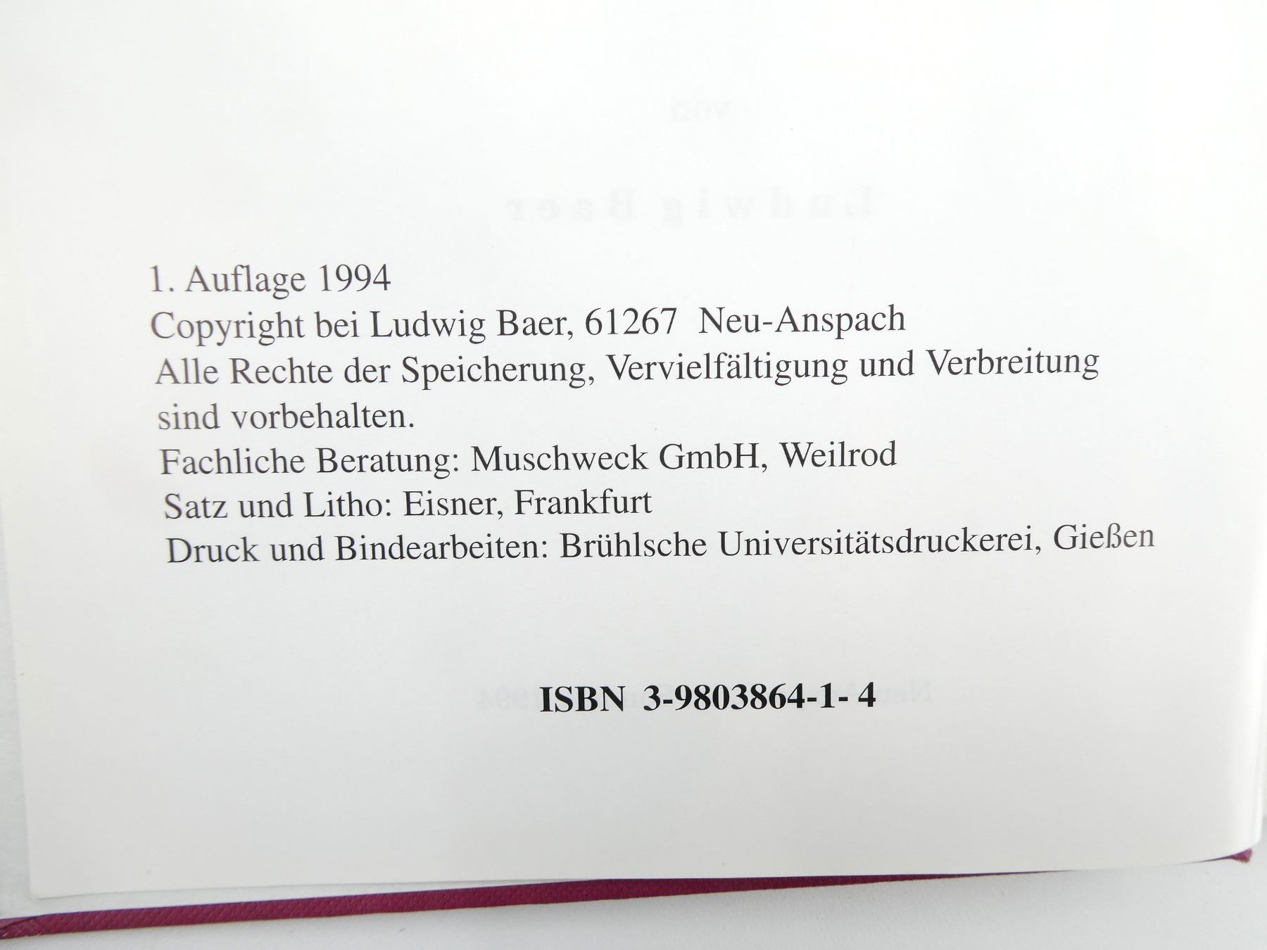 (1) BY LUDWIG BAER, IN GERMAN, HARD COVER, ISBN: 3-9803864-1-4. SEE PHOTOS.
