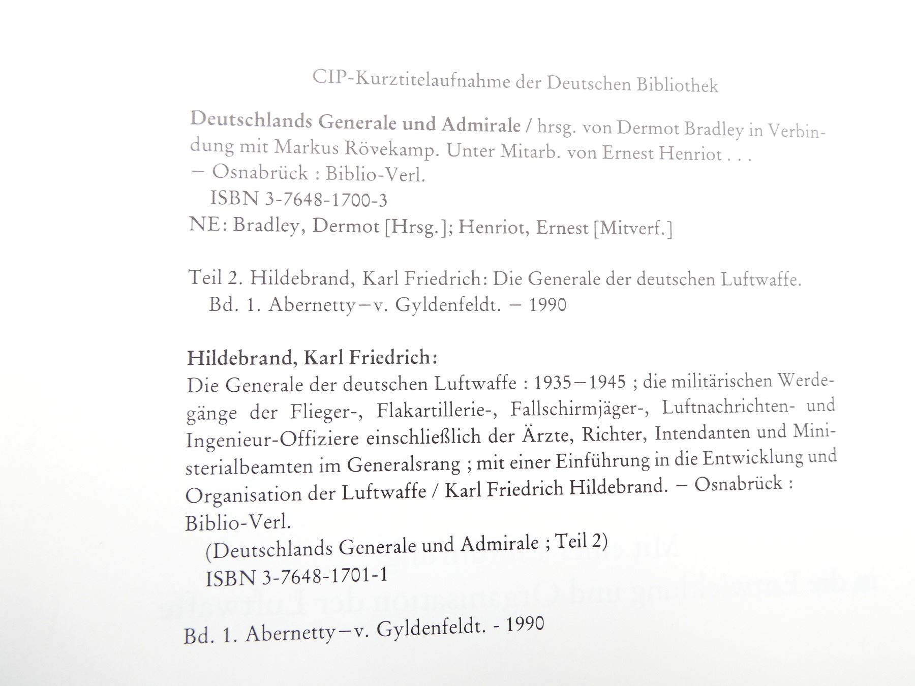 Lot 34009 "DIE GENERALE DER DEUTSCHEN LUFTWAFFE 1935-1945, BAND 1: A-G" BOOK