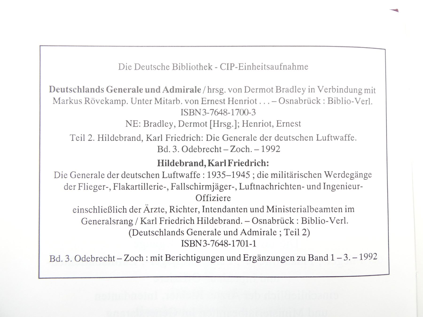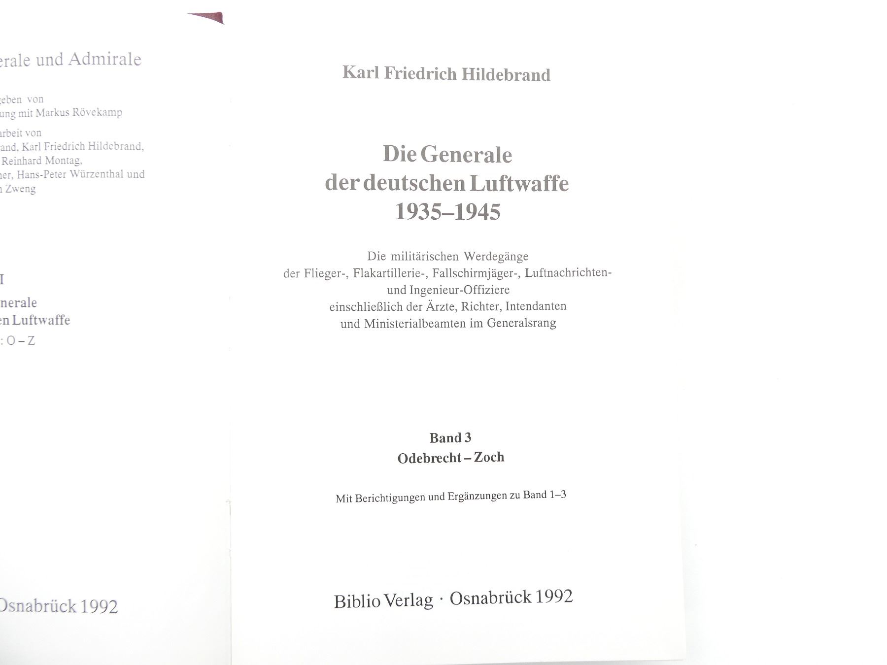 Lot 34011 "DIE GENERALE DER DEUTSCHEN LUFTWAFFE 1935-1945, BAND 3: O-Z" BOOK