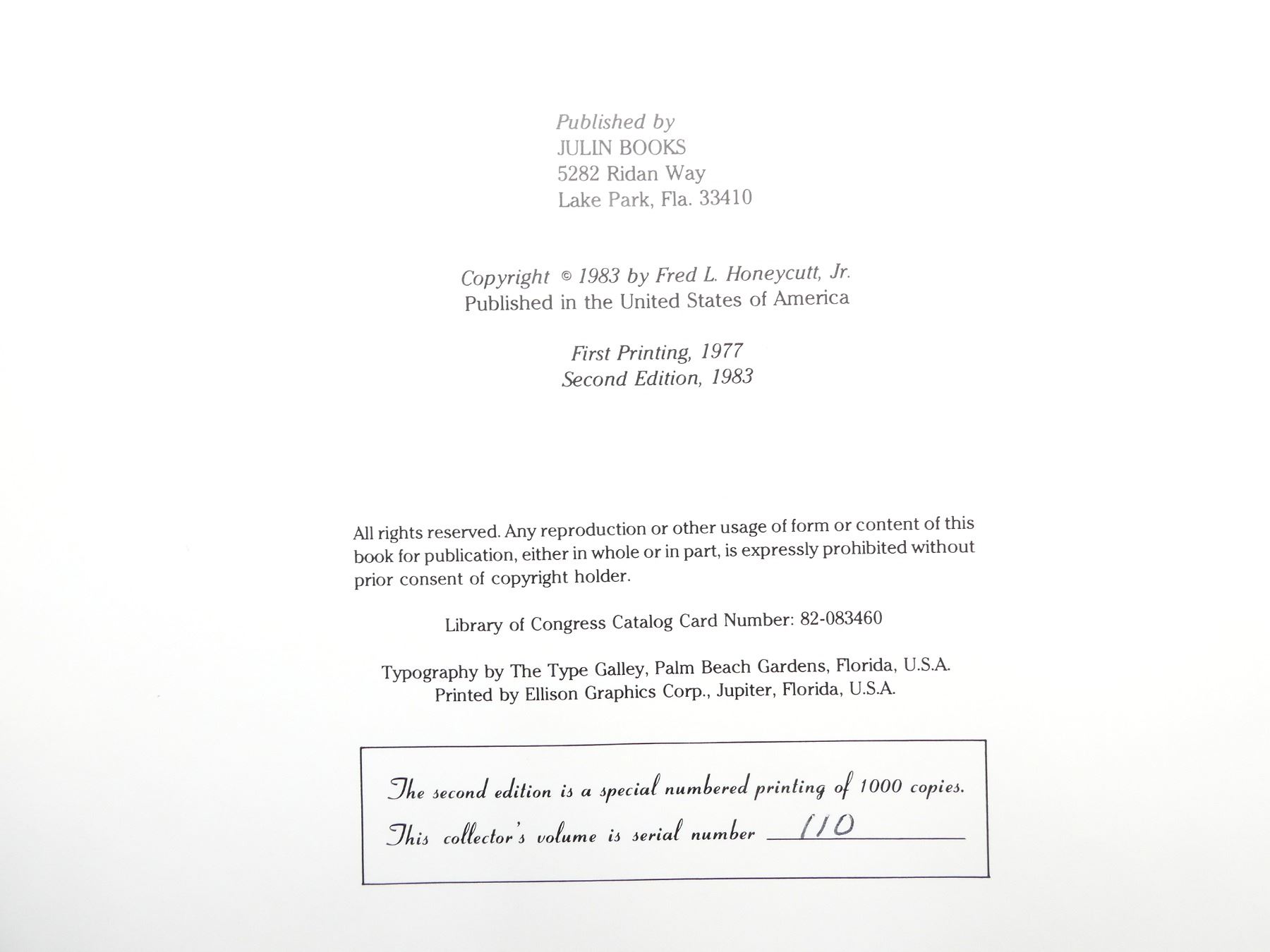 (1) BY FRED L. HONEYCUTT JR., HARD COVER WITH DUST COVER, SIGNED BY AUTHOR, #110 OF 1000, SECOND EDITION, COPYRIGHT 1983. SEE PHOTOS.