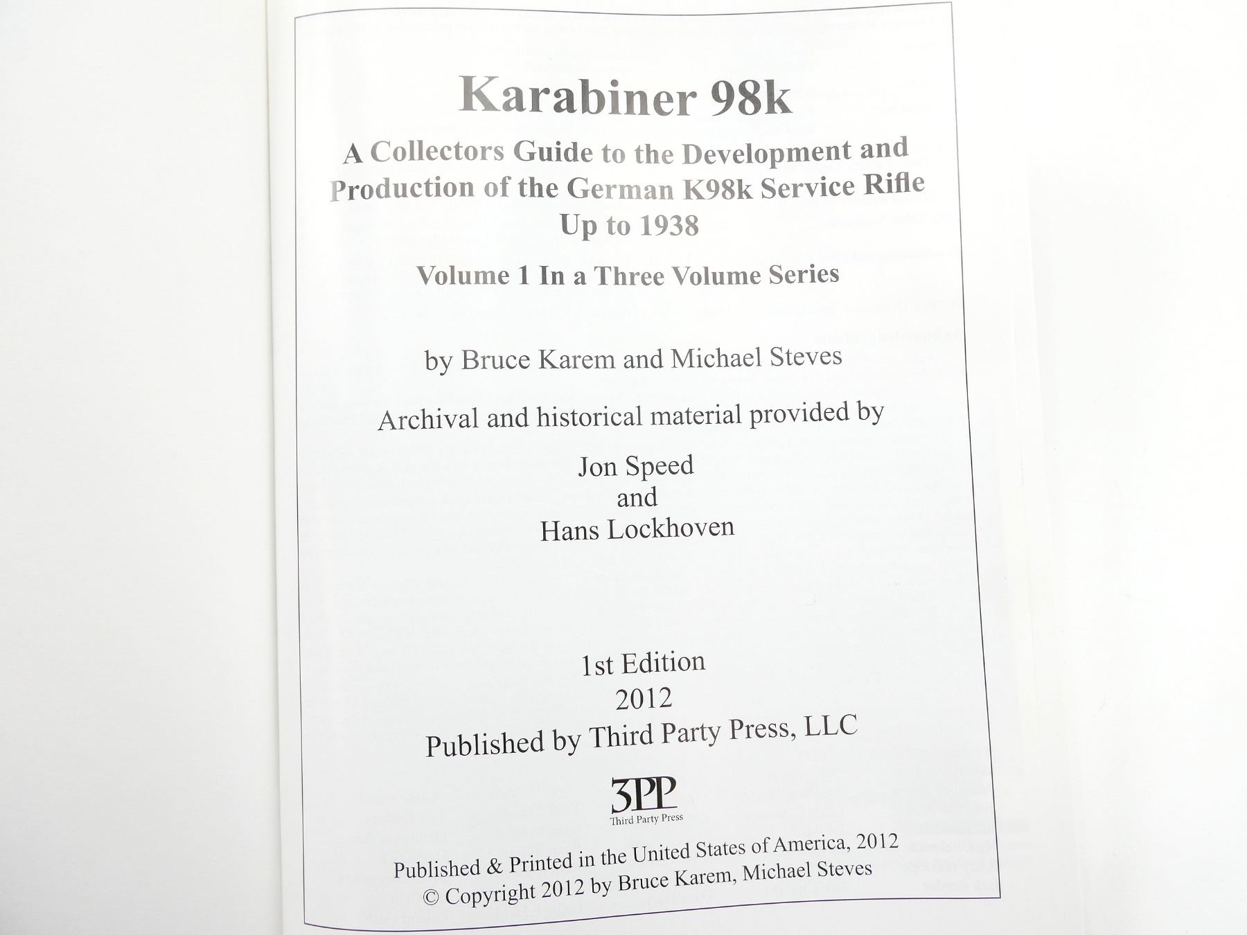 Lot 34055 "KARABINER 98K, VOLUME I" BOOK