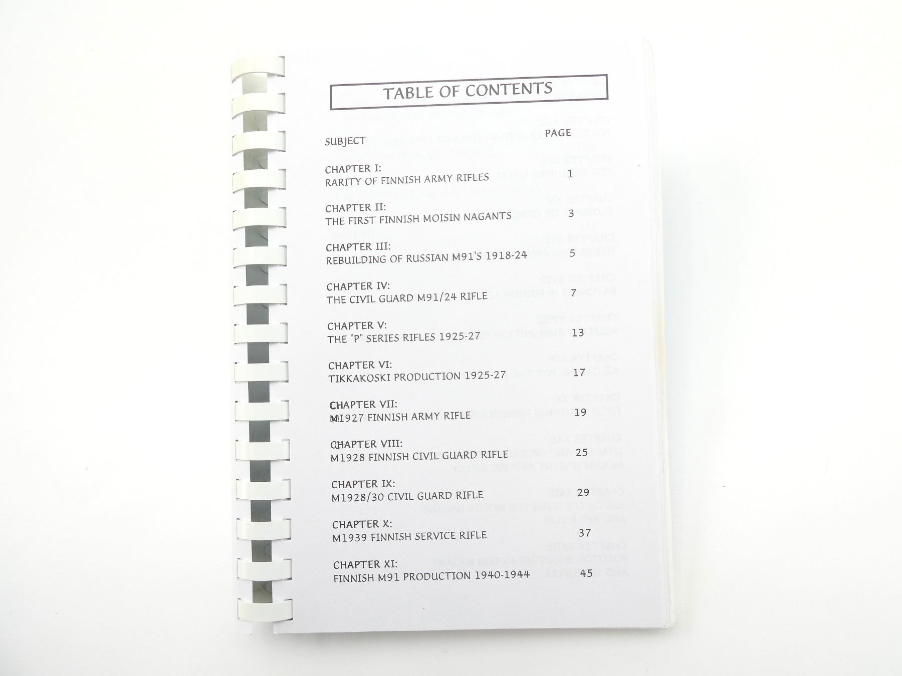 (1) "A COLLECTOR'S AND SHOOTER'S GUIDE TO FINNISH MILITARY RIFLES 1918-1944" BOOK BY DOUG BOWSER, INSCRIBED & SIGNED BY AUTHOR, FIRST EDITION, SPIRAL BOUND, COPYRIGHT 1998. SEE PHOTOS.