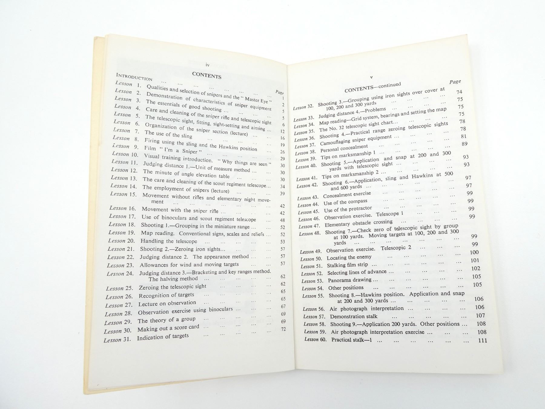 LOT INCLUDES; (1) "THE M1 RIFLE" AMERICAN RIFLEMAN MAGAZINE, THIRD EDITION, SECOND PRINTING, SOFT COVER, COPYRIGHT 1993, (1) "MAUSER RIFLES" AMERICAN RIFLEMAN MAGAZINE, REVISED EDITION, FOURTH PRINTING, SOFT COVER, COPYRIGHT 1985, (1) "FABRIQUE NATIONALE MODEL 49 SELF-LOADING RIFLE" MANUAL, SOFT COVER & (1) "INFANTRY TRAINING, VOLUME 1, INFANTRY PLATOON WEAPONS, PAMPHLET NO. 10, SNIPING, 1951" MANUAL, SOFT COVER, 1951. SEE PHOTOS.