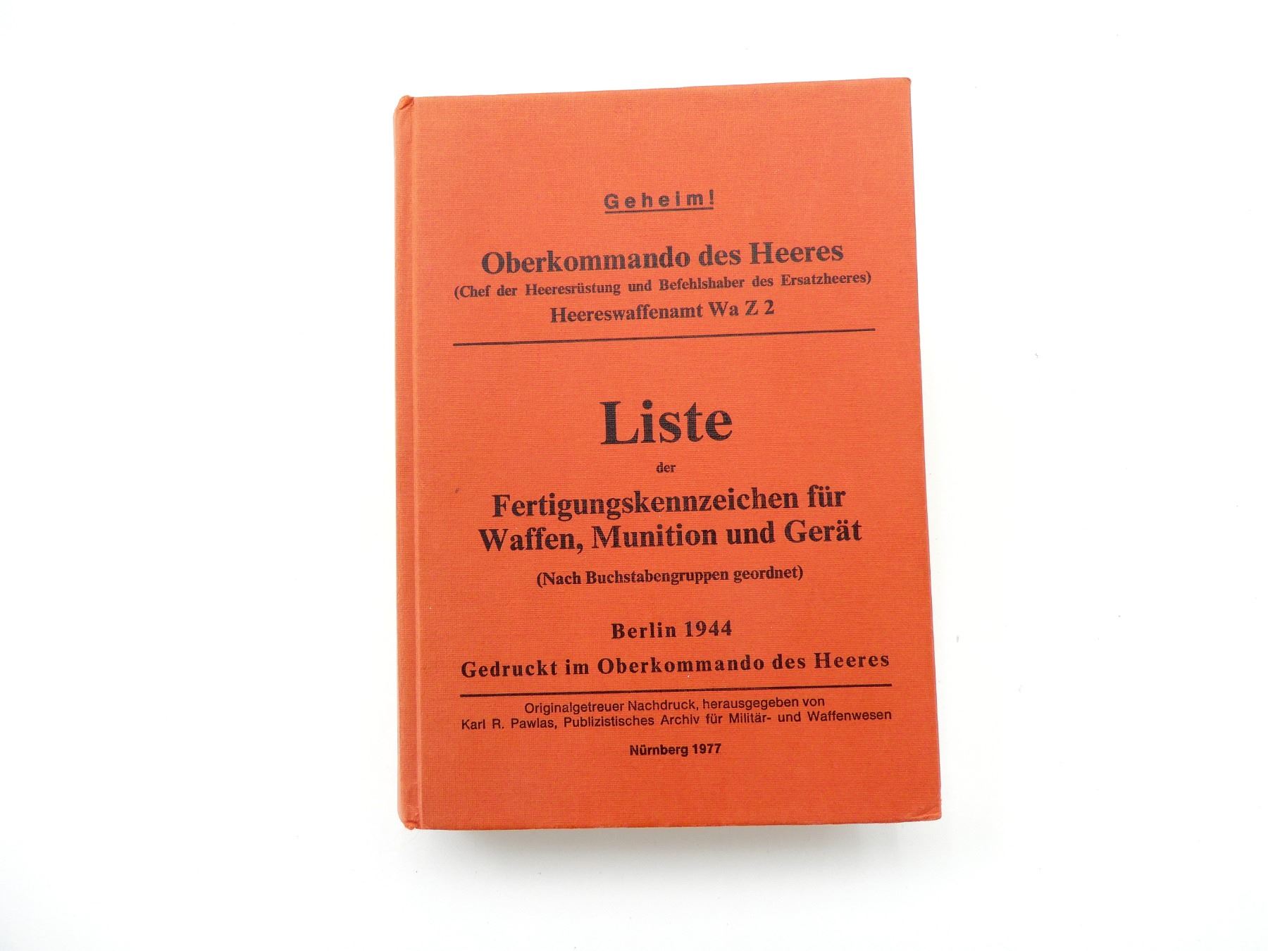 "LISTE DER FERTIGUNGSKENNZEICHEN FUR WAFFEN, MUNITION UND GREAT" BOOK