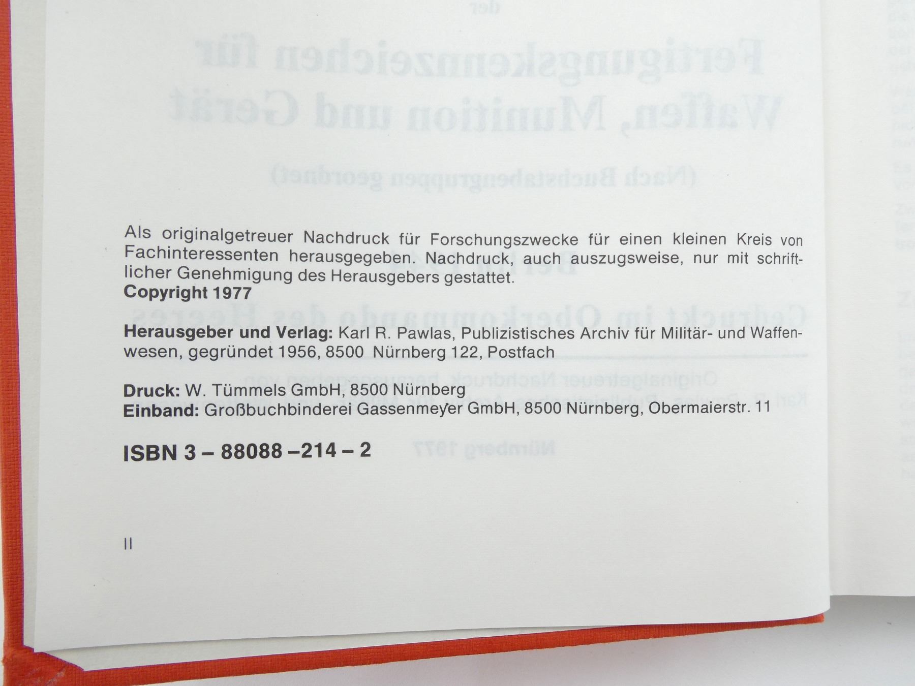 Lot 34086 "LISTE DER FERTIGUNGSKENNZEICHEN FUR WAFFEN, MUNITION UND GREAT" BOOK