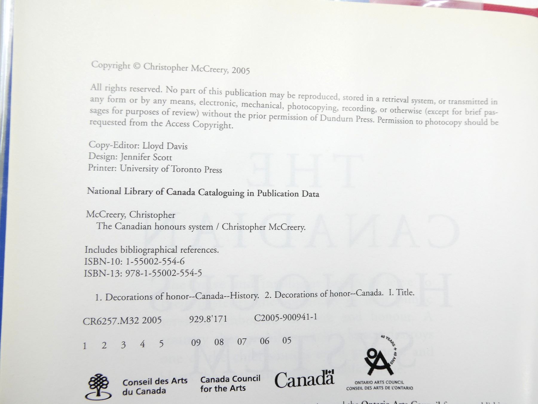"THE CANADIAN HONOURS SYSTEM" BOOK LOT