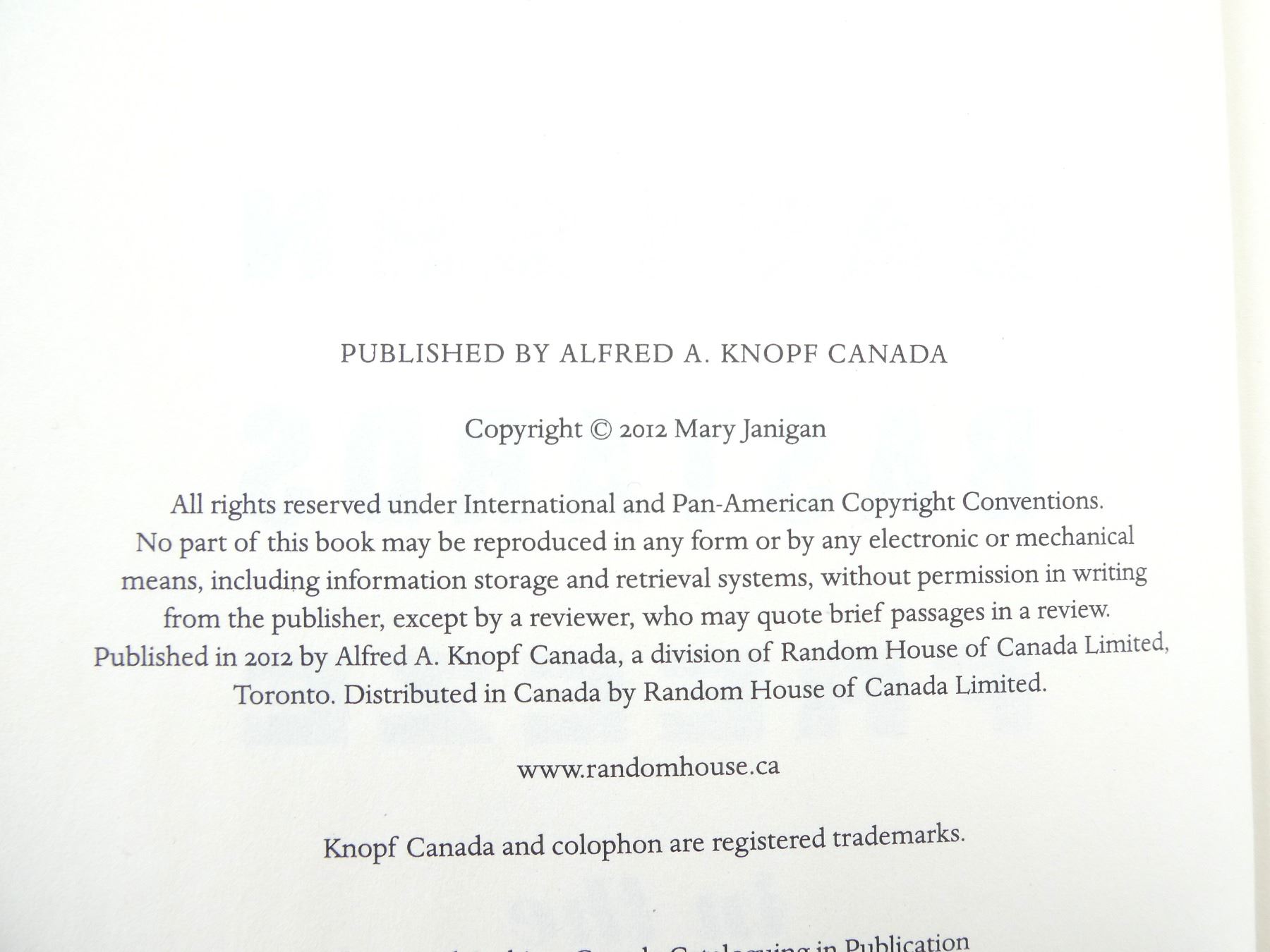 (1) BY MARY JANIGAN, HARD COVER WITH DUST COVER, ISBN: 978-0-307-40062-8. SEE PHOTOS.