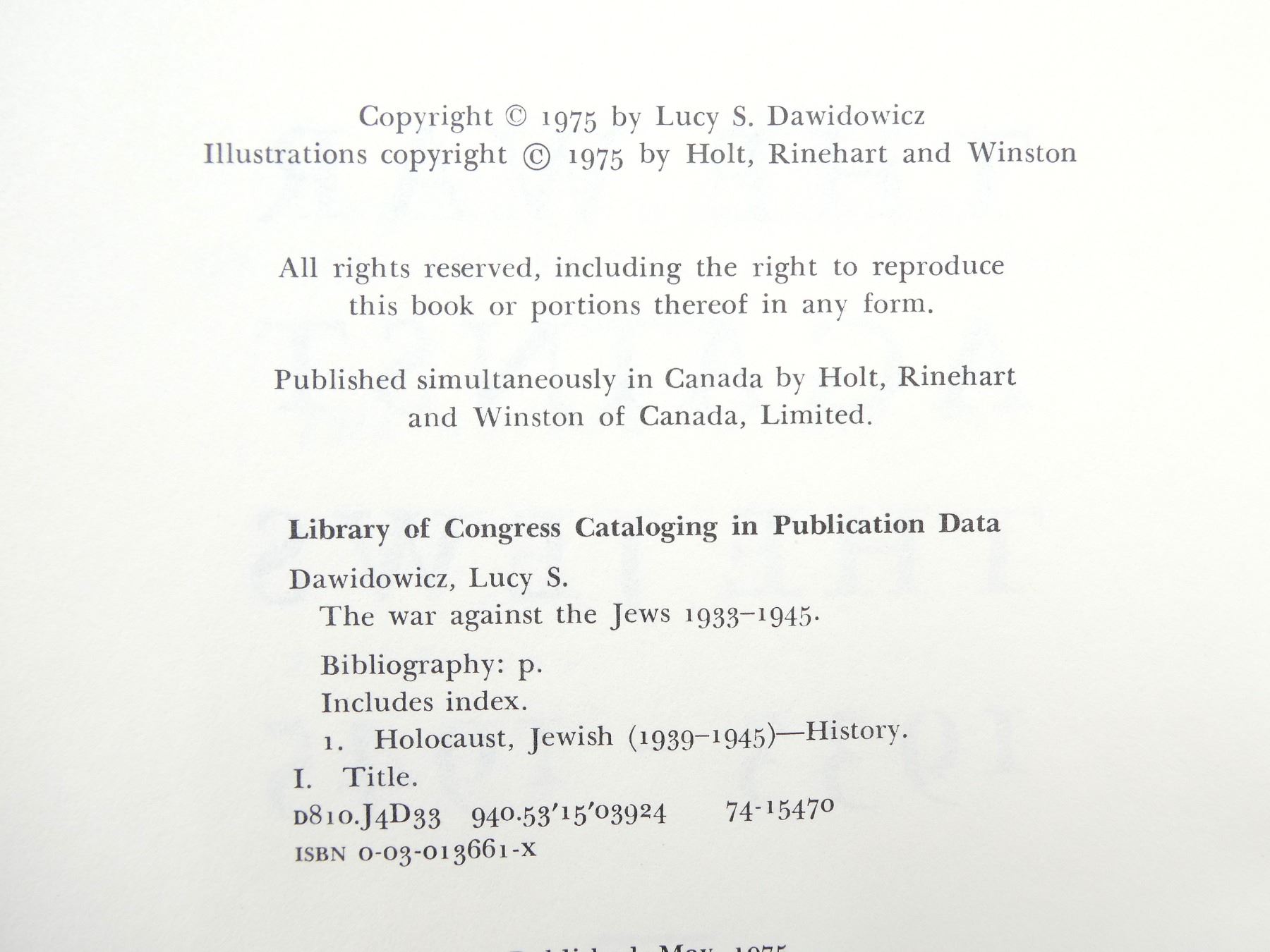 Lot 34128 "THE WAR AGAINST THE JEWS 1933-1945" BOOK