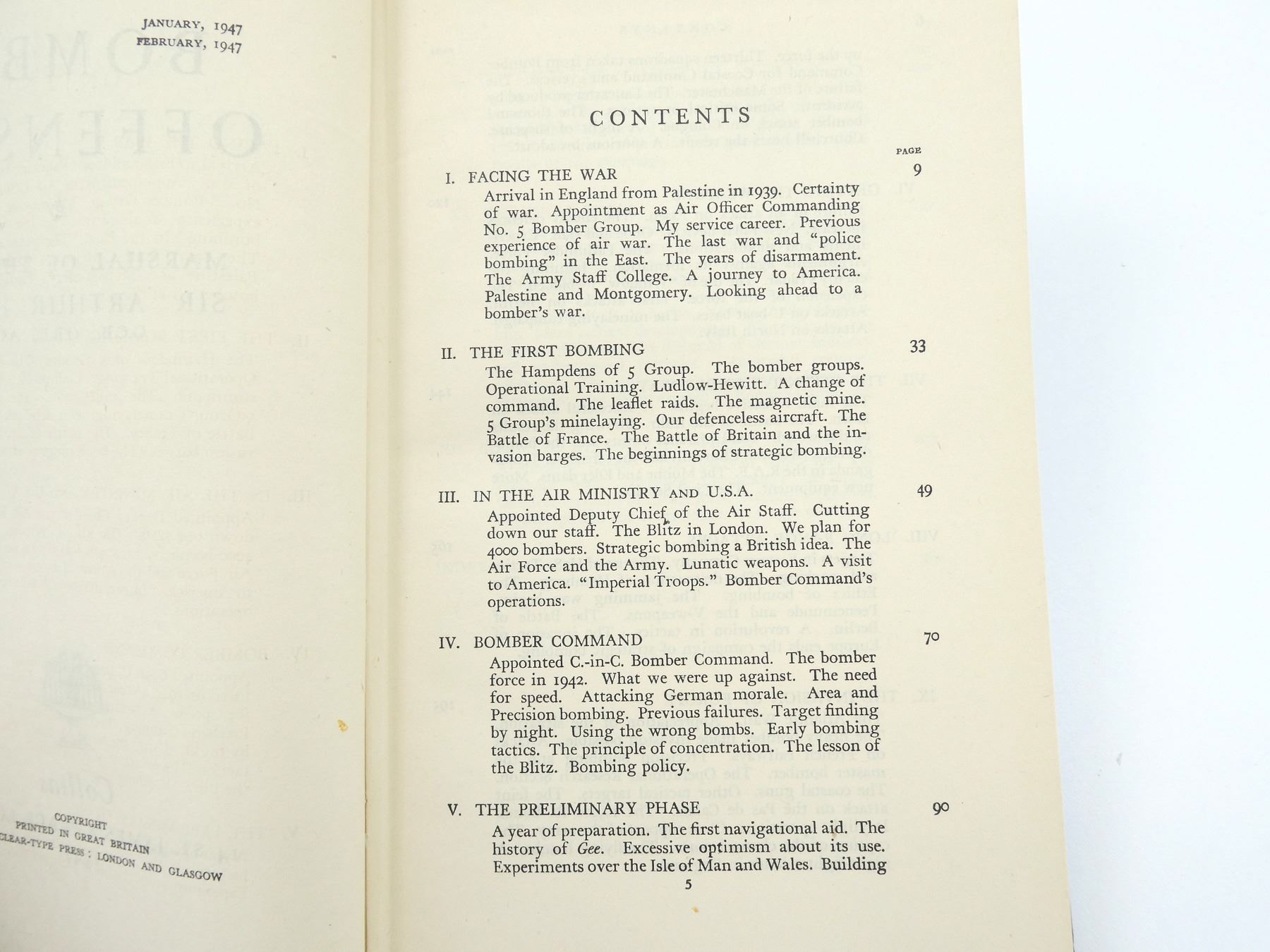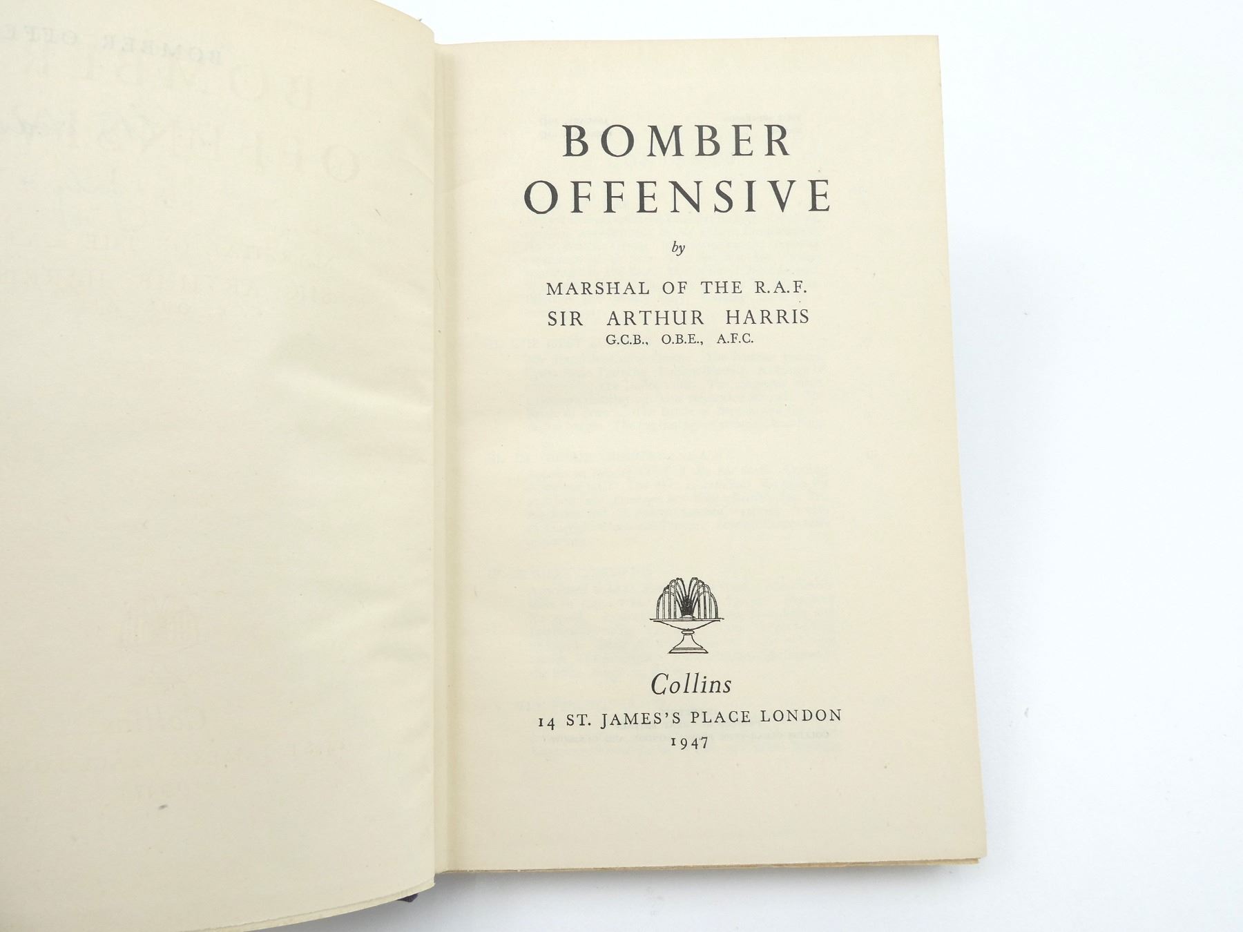 (1) BY MARSHAL OF THE R.A.F. SIR ARTHUR HARRIS, HARD COVER, SECOND IMPRESSION 1947. SEE PHOTOS.