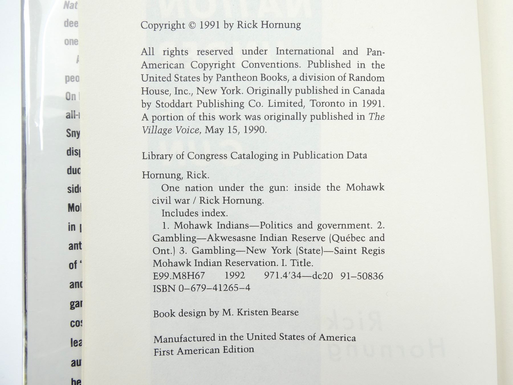 (1) BY RICK HORNUNG, HARD COVER WITH DUST COVER, ISBN: 0-679-41265-4. SEE PHOTOS.