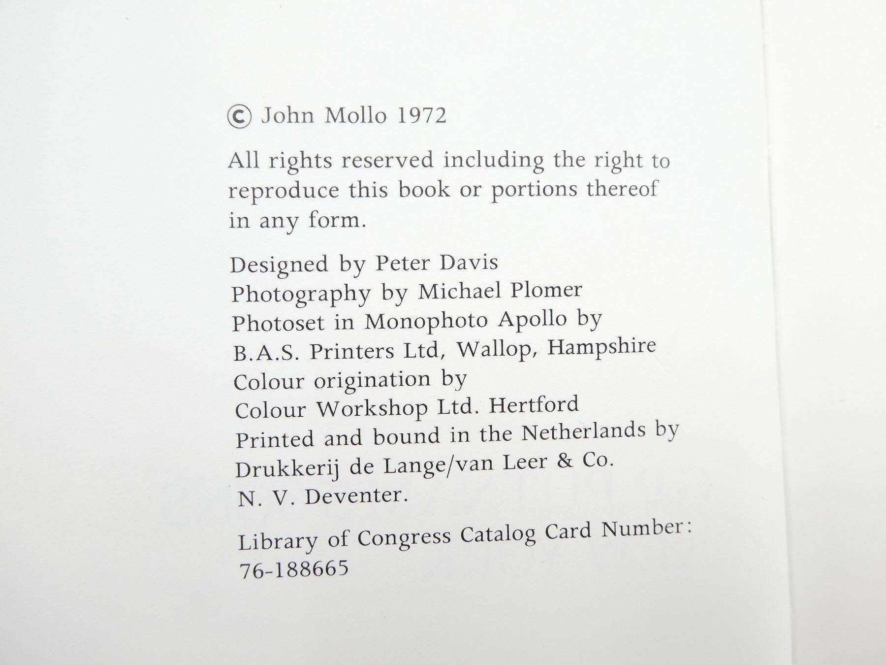 (1) BY JOHN MOLLO, HARD COVER WITH DUST COVER, COPYRIGHT 1972. SEE PHOTOS.